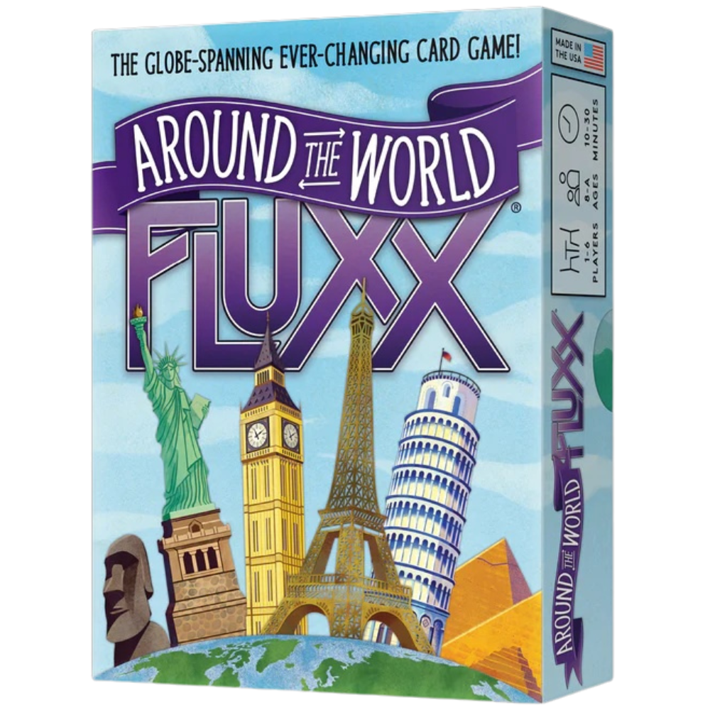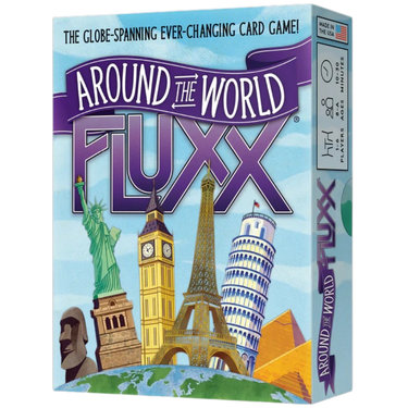 Around the World Fluxx uses the basic gameplay of Fluxx, but now you're on visiting famous landmarks around the globe. Discover man-made wonders across all seven continents, from Stonehenge to the Taj Mahal, including the Galápagos Islands, Panama Canal, Angkor Wat, and the Statue of Liberty.