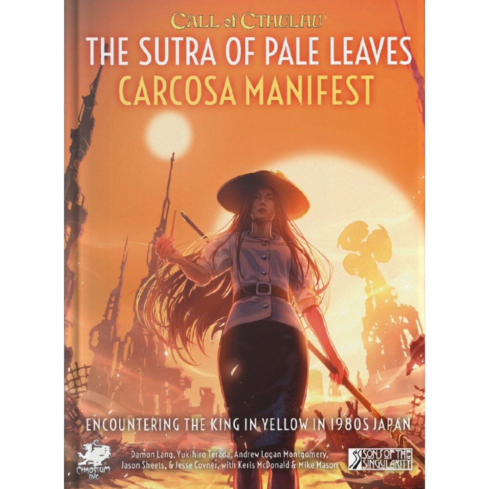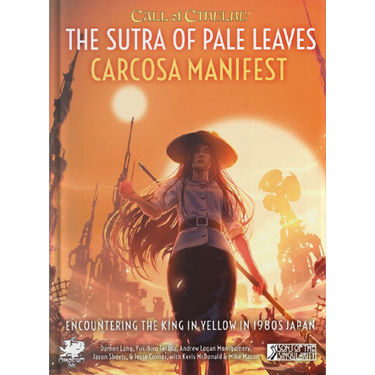 The stars burn and strange portents herald the arrival of Carcosa, the twilight city of wonder and horror. A book like no other, the Sutra of Pale Leaves powers creativity while corrupting those it touches. It’s reappearance in 1980’s Japan means the insidious influence of the Prince of Pale Leaves draws ever closer. A new take on an infamous Mythos entity He Who is Not to be Named - The King in Yellow. A guide to the Sutra of Pale Leaves and its insidious effects, plus six ready-to-play investigators and a range of NPC confidants.