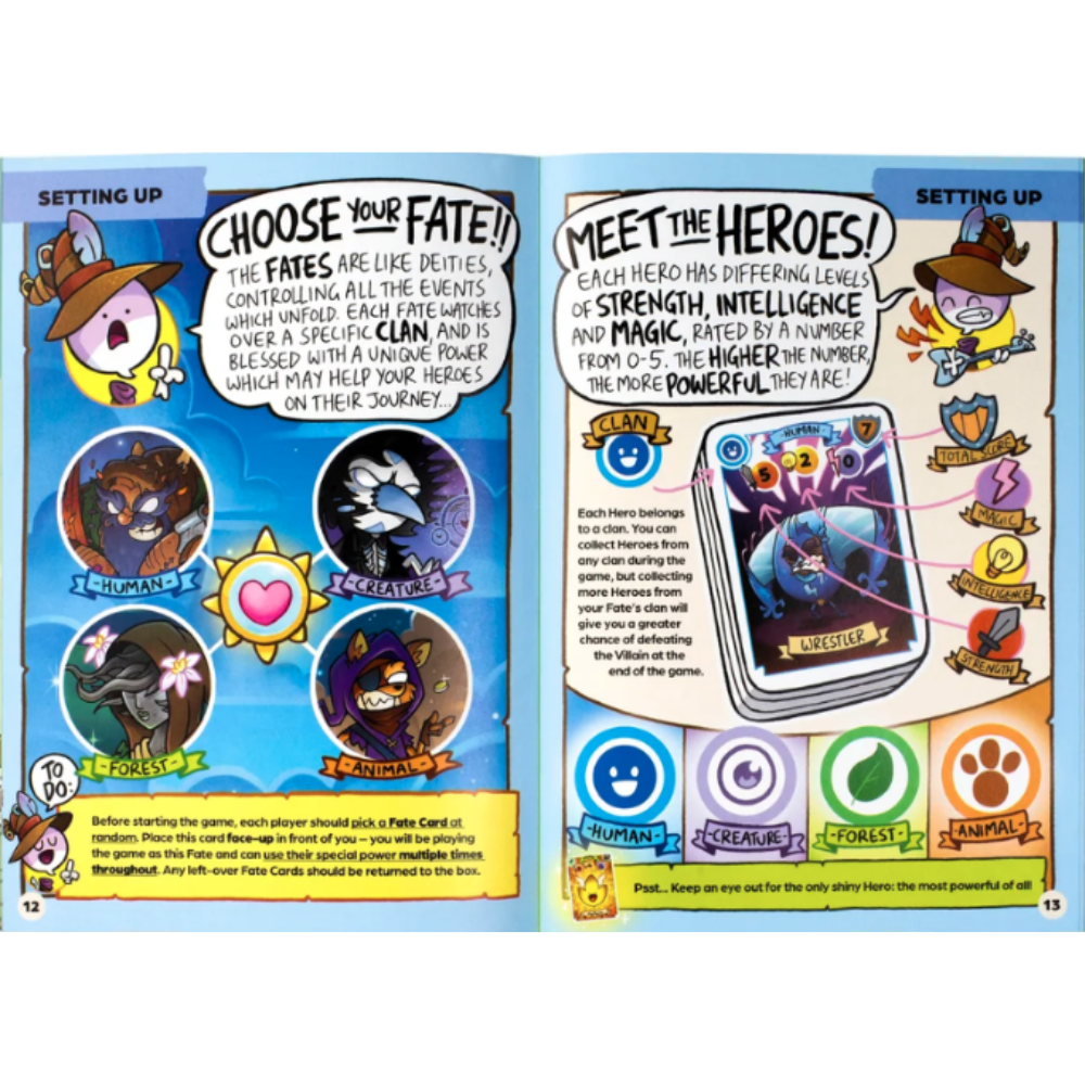 Dare you set foot inside the Enchanted Forest to face the Great Evil lurking within? Gather together a band of weird and wonderful Heroes as you collect Imps, go on Side Quests and start Fights with your opponents in this fast-paced family card game. Compete to be the first to beat the Villain and save the day!