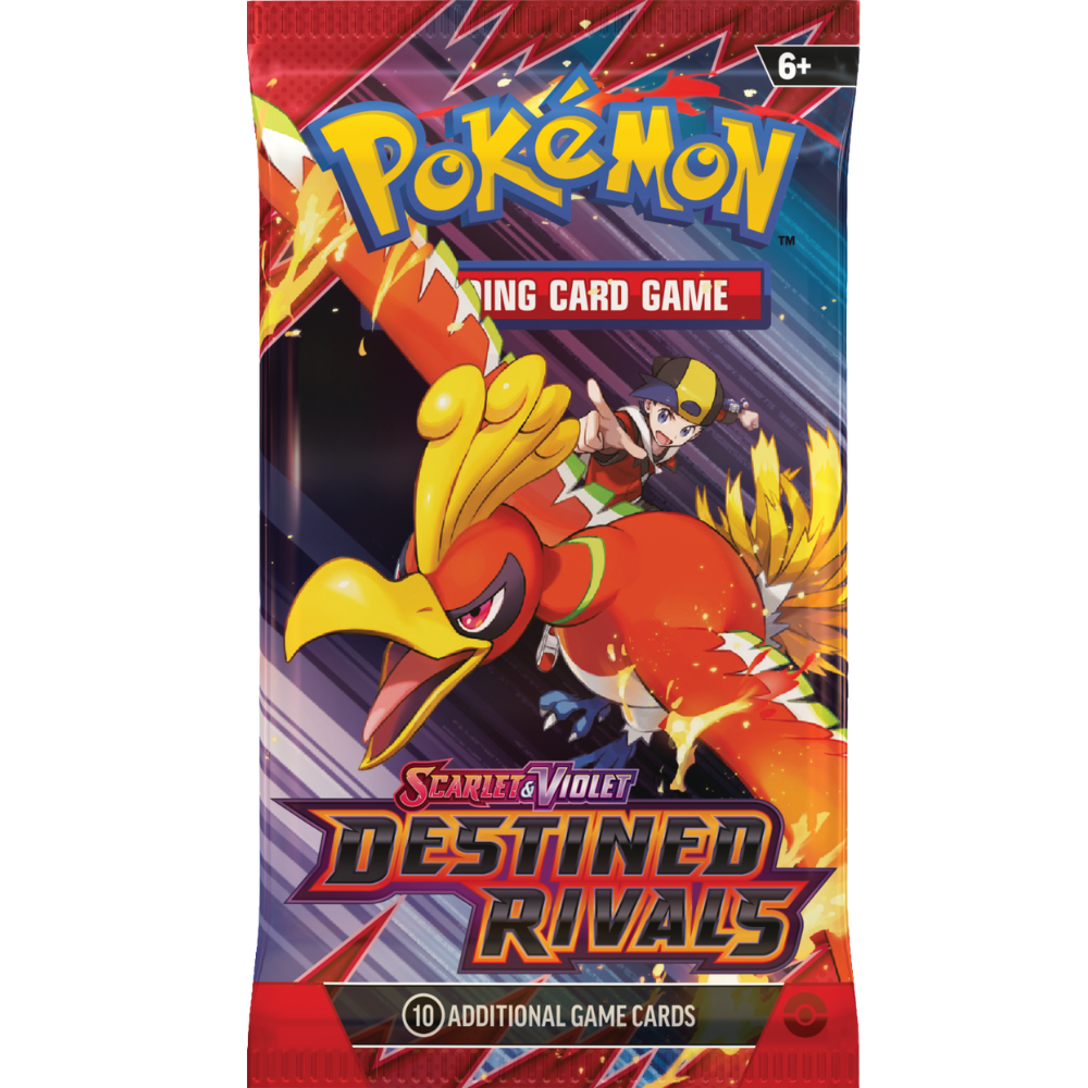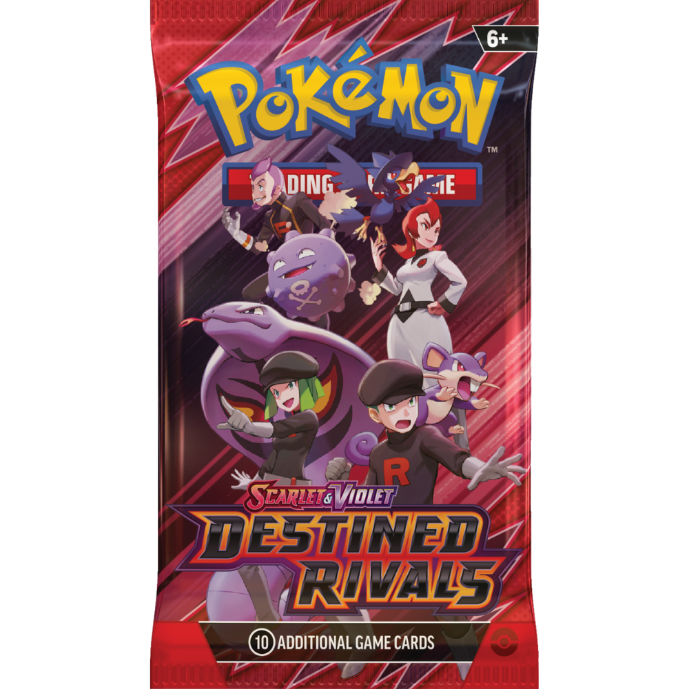 Pokémon Trainers, be on high alert! The nefarious Team Rocket is setting its latest plan into motion, and heroic Trainers are racing to stop it. Join forces with the likes of Cynthia and Garchomp ex, Ethan and Ho-Oh ex, or Arven and Mabosstiff ex… Or reconsider your loyalties and fight alongside Team Rocket’s Pokémon like Mewtwo ex—under the command of Giovanni! Choose a side, assemble your allies, and battle boldly in the Pokémon TCG: Scarlet & Violet—Destined Rivals expansion!