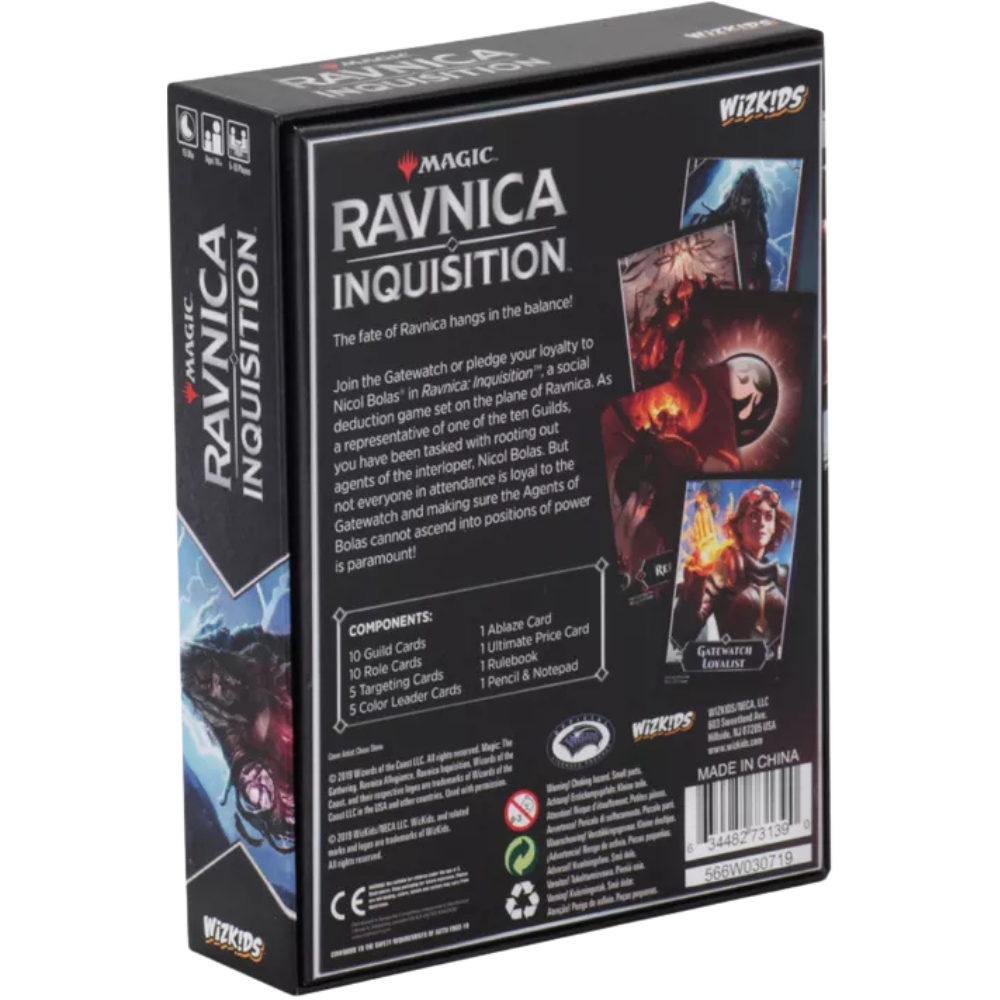 Join the Gatewatch or pledge your loyalty to Nicol Bolas in Ravnica: Inquisition, a social-deduction game set on the Magic: The Gathering plane of Ravnica. Each player takes on the role of a representative of a Ravnican guild that is either loyal to the Gatewatch or an Agent of Bolas.