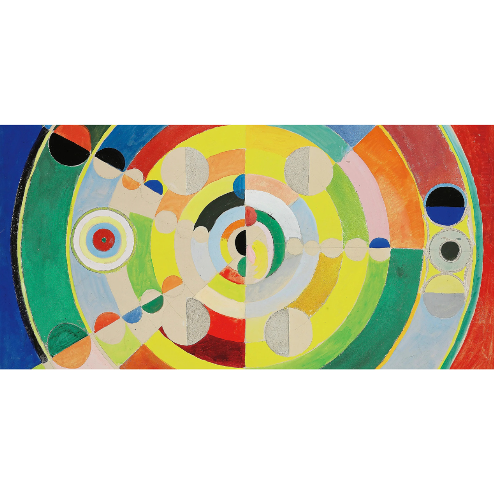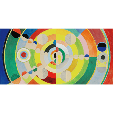 A cofounder of the Orphism art movement, Robert Delaunay was one of the earliest completely nonrepresentational painters. With his wife, Sonia Delaunay, and others at its helm, Orphism integrated strong color and geometric shapes into the inspirational school of Cubism that was taking the Paris art world by storm at the onset of the 20th century. In Relief-disques, Delaunay mixed sand with the gouache paint to create texture and dimension, the details of which are visible in this reproduction.