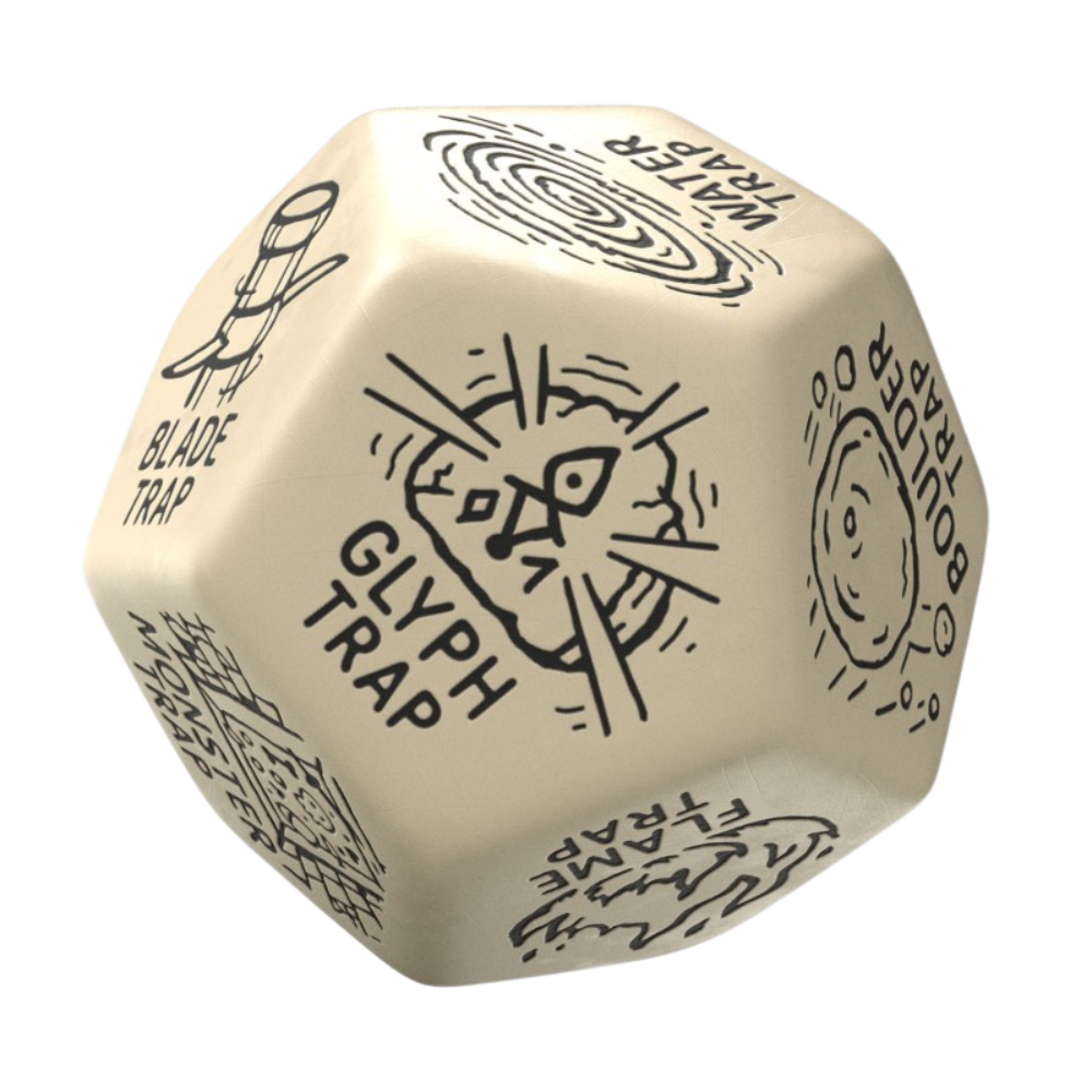 No more empty corridors! The Trap Generator Die is a jumbo K12 designed by Viridian Dice to add tension and danger to every adventure. Each roll can turn a simple hallway into a deadly gauntlet — from hidden spikes to crackling lightning glyphs. One toss decides the party’s fate!