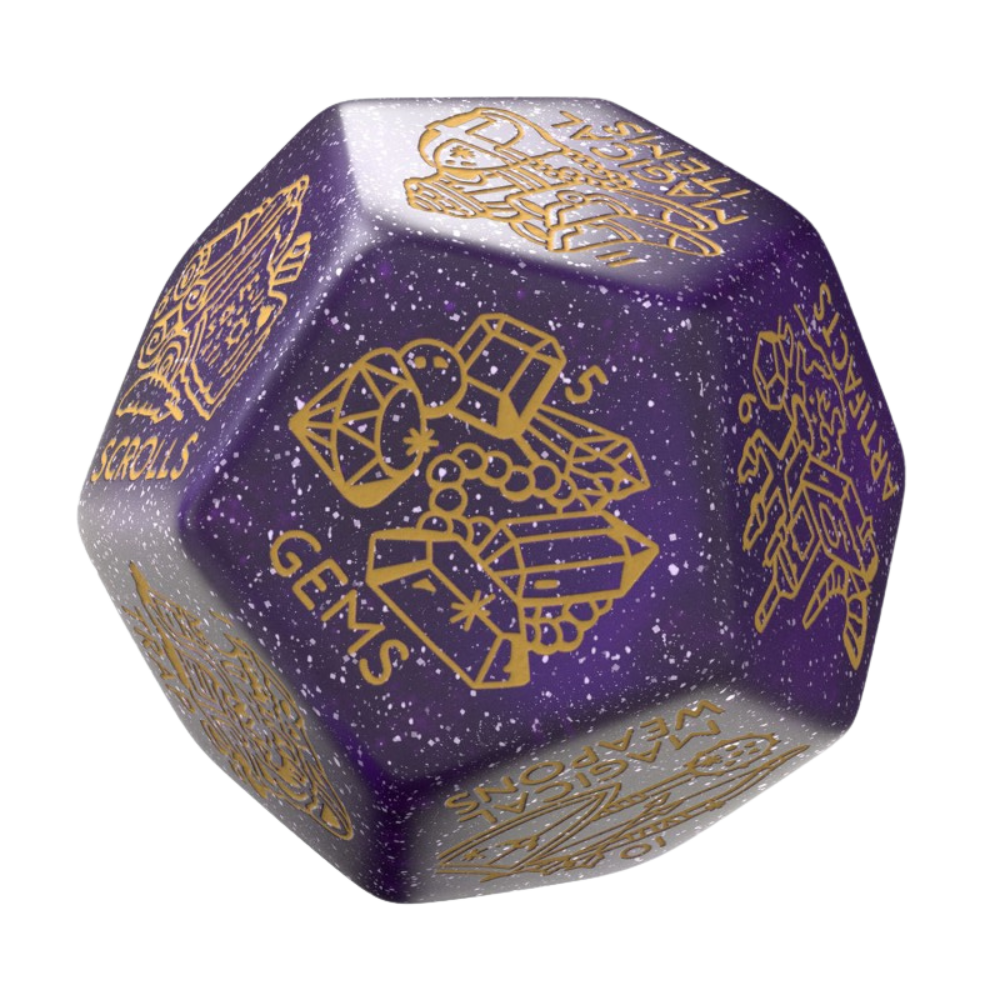 Riches or ruin? The Treasure Generator Die is a jumbo D12 designed by Viridian Dice, ready to randomise loot, relics, and rewards for adventurers. Each roll reveals the fortune (or misfortune) within — from mundane items to artifacts of legend. Perfect for spontaneous treasure creation and session prep.