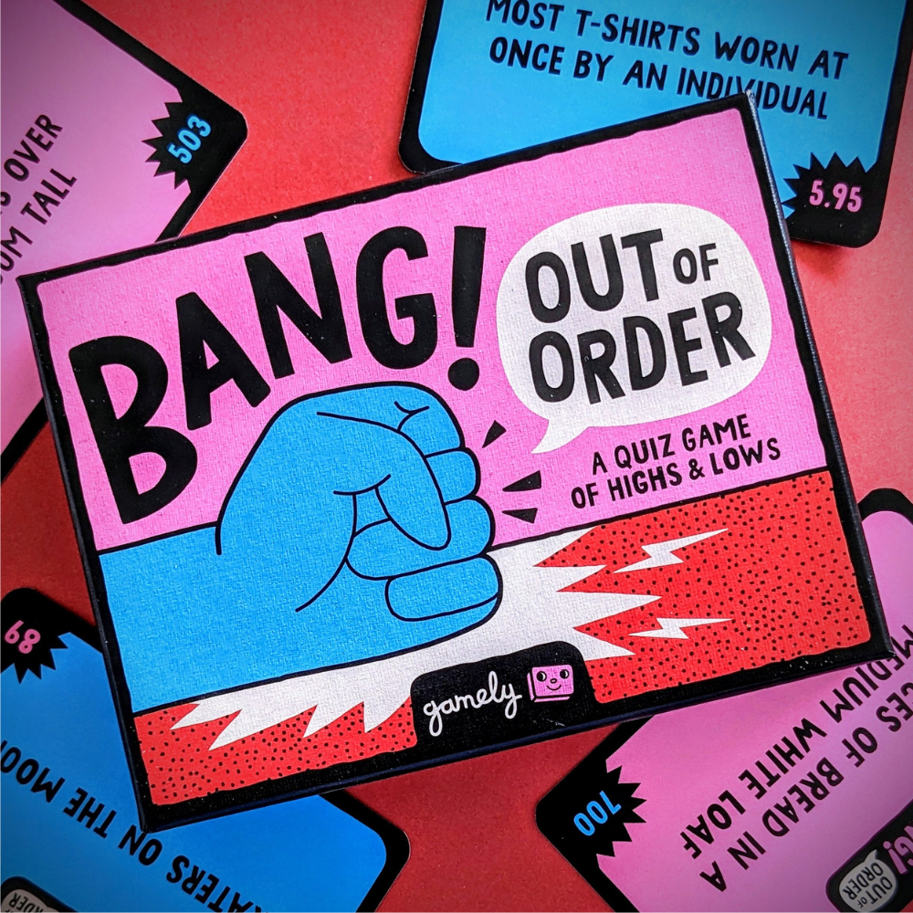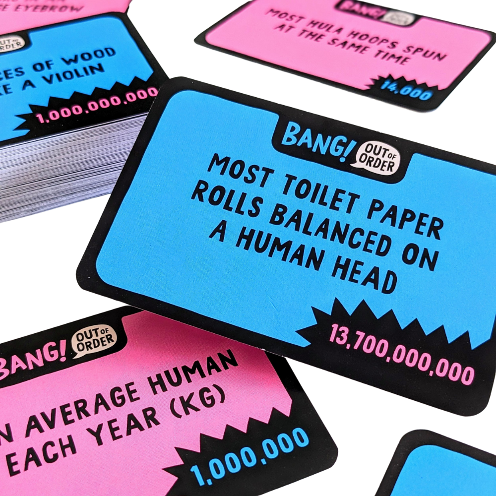 In Bang! Out of Order you don’t really need to know the answers… just decide what's higher or lower and line them up. It’s easy at the start; but as the facts stack up so does the tension!