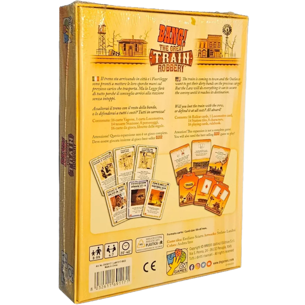 Expansion for BANG! card game. This expansion is co-designed with Czech and Slovak players and brings new mechanicss, new cards to be shuffled with the basic deck, and 8 brand-new characters.