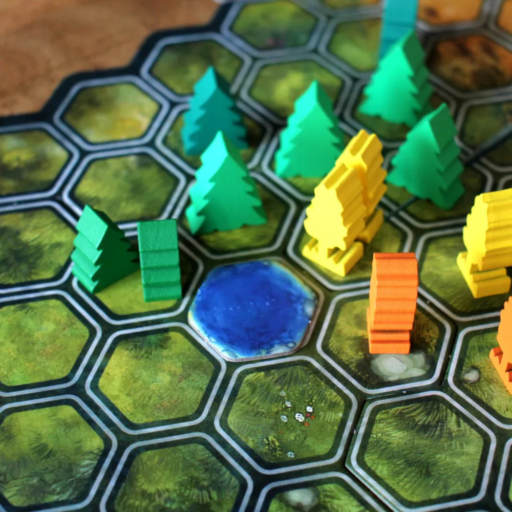 Players start by seeding and growing a forest space adjacent to each water tile. This is where players determine their initial strategy and appetite for risk. Then play begins.