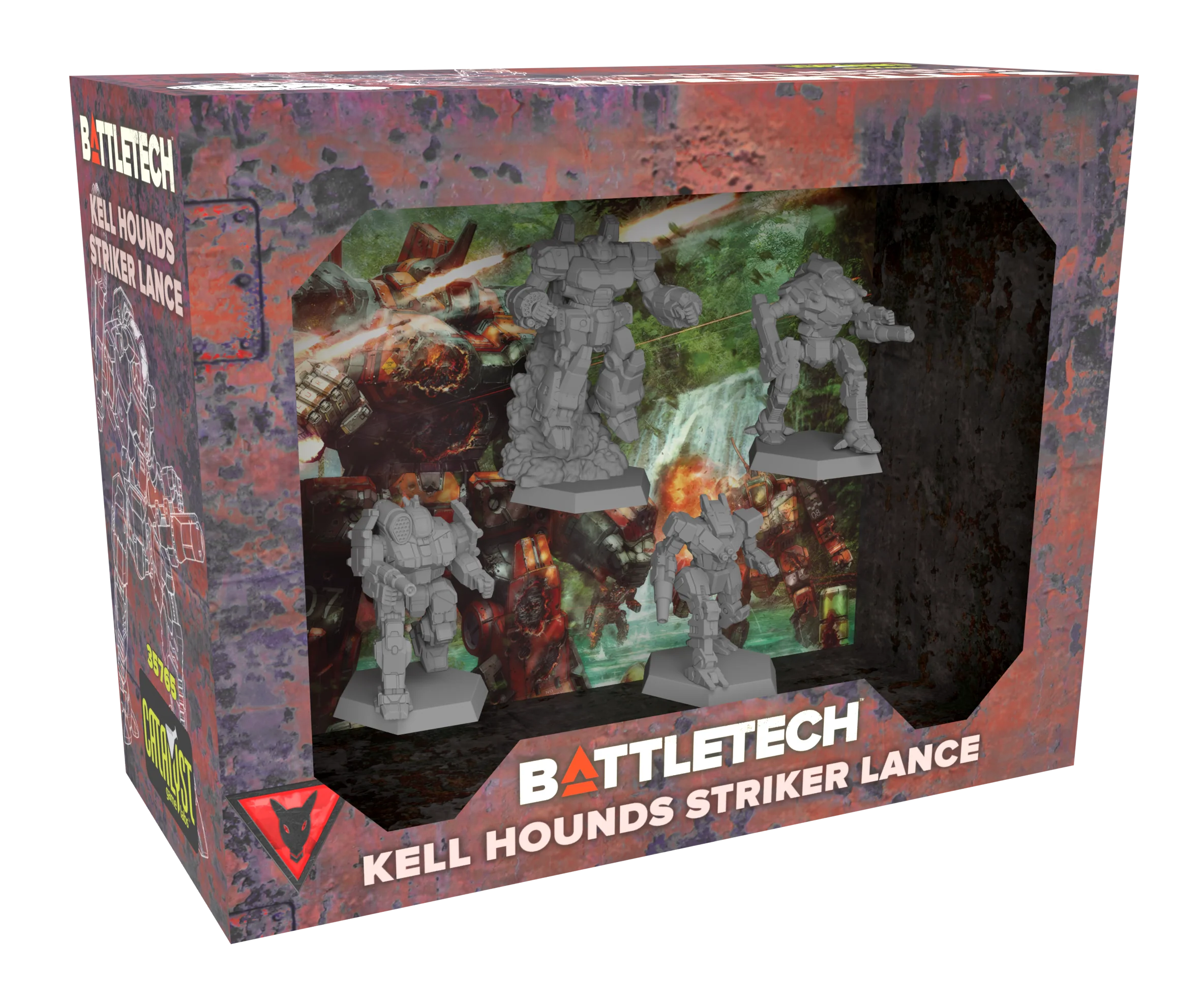 Unleash the Kell Hounds Striker Lance! Included is the new Nightsky, a re-posed Wolfhound, and new variants of the Griffin and jumping Crusader—no assembly required—along with four MechWarrior pilot cards and four Alpha Strike cards. Perfect for BattleTech and Alpha Strike action!