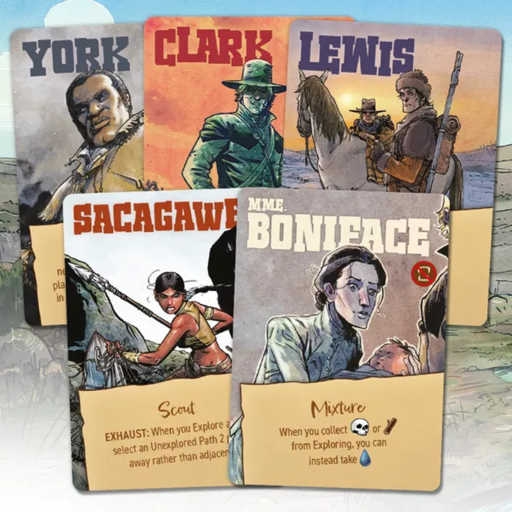 Corps of Discovery: A Game Set in the World of Manifest Destiny is a co-operative deduction game in which players each take the role of one of the crew on the expedition and set out to explore the land. The game board allows for different maps to be inserted into it, so you have many adventures ahead of you.
