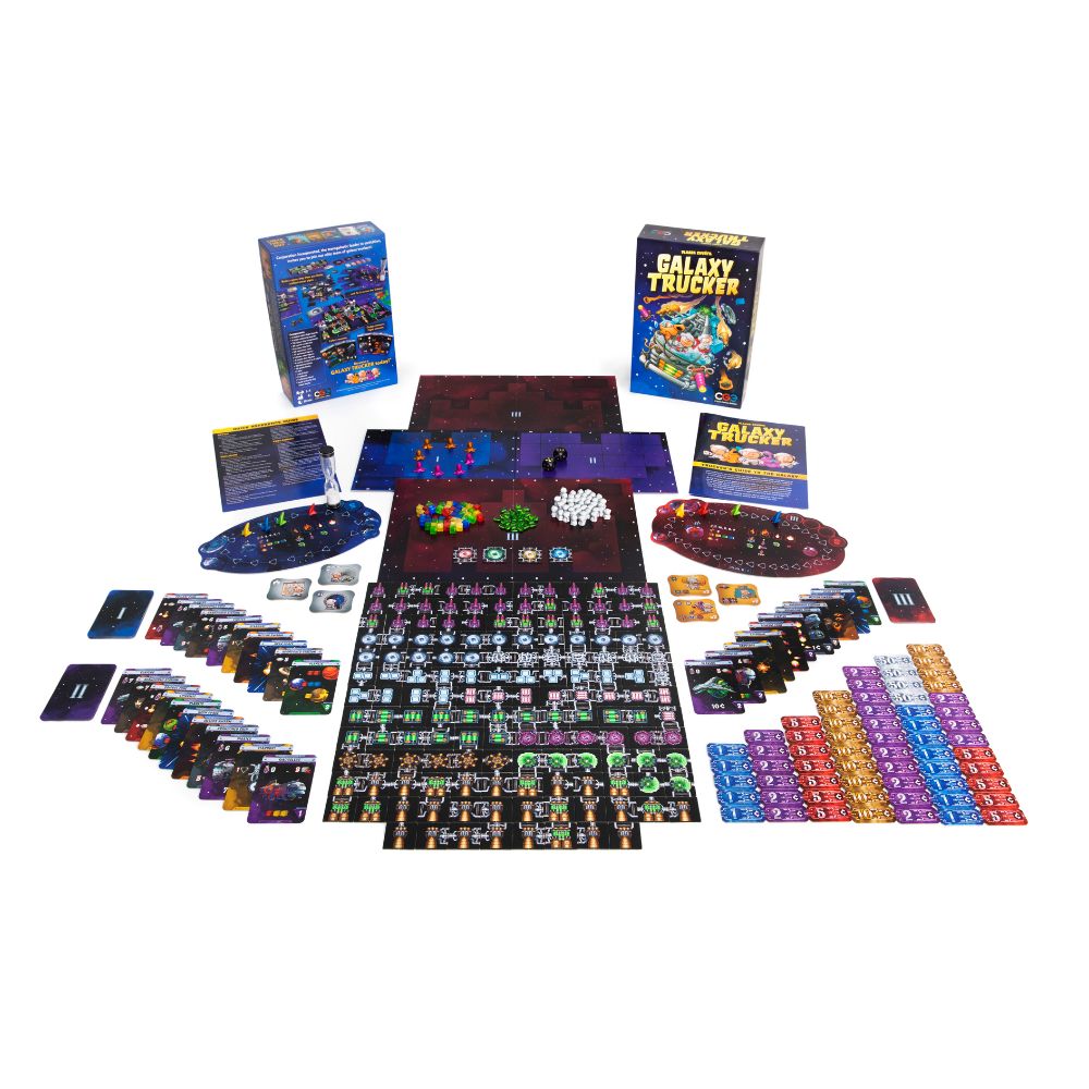 This version of Galaxy Trucker is a relaunch of the original 2007 release by Vlaada Chvátil that features new art, more ship tiles, tweaked card effects, and streamlined gameplay that consists of only a single flight through space. That said, should you want a longer, more challenging experience, you can play a three-flight game known as the "Transgalactic Trek".