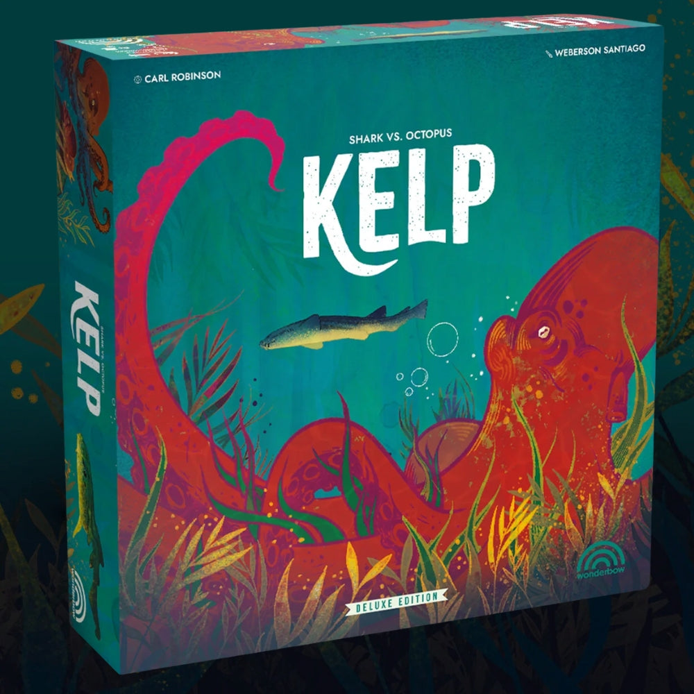 Kelp is a two-player asymmetrical game that offers players a unique opportunity to delve into the natural world of Pyjama Sharks and Common Octopuses, set in a South African kelp forest. Hide and seek meets bluffing and manipulation. Deck builder meets dice bag builder.