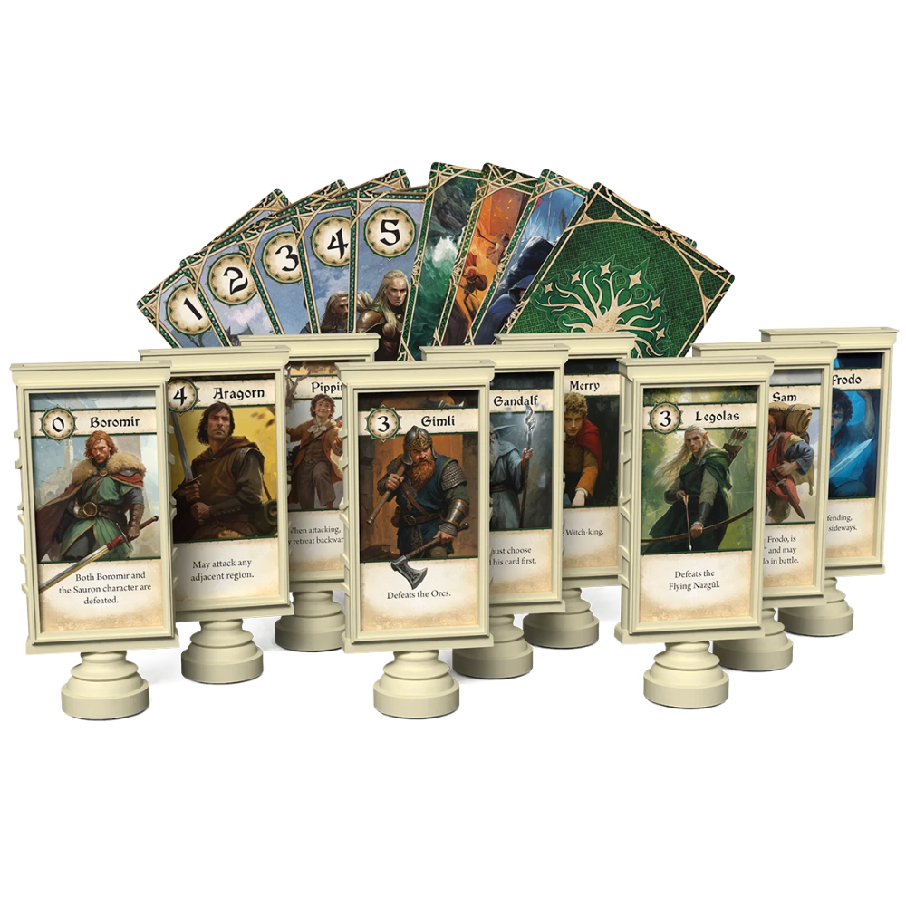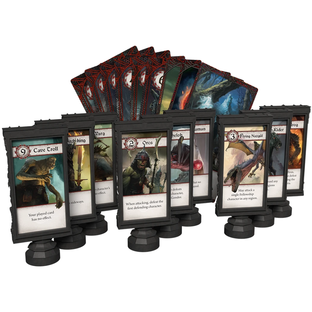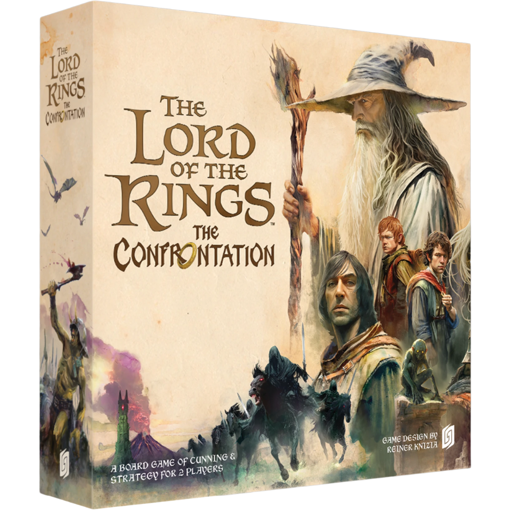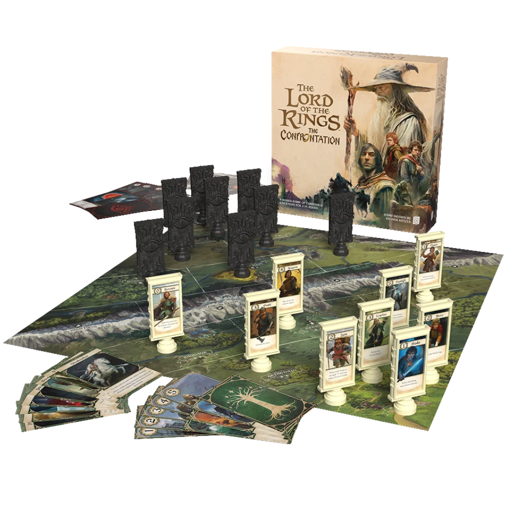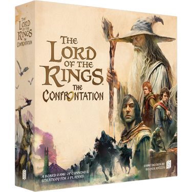 The Confrontation is a board game in which players take control of the forces of Sauron, seeking to find their master’s ring, or the forces of the free peoples of Middle Earth seeking to destroy Sauron's ring in the fires of Mount Doom. The Confrontation allows players to control many of the famous characters of Tolkien's famous trilogy, while playing an intense 30-minute game that is a combination of bluffing and strategy.