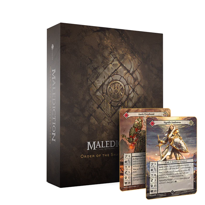 You play as a Seeker, a champion of your faction, leading a warband into the accursed grounds of the Malediction and battling enemies to claim relics from the husks of their former wielders. The game can be played head-to-head or in teams. Players bring their choice of terrain set to create a battlefield and face one another using their custom decks, with each Seeker offering distinct play styles and creative ways to combine cards from their associated factions.