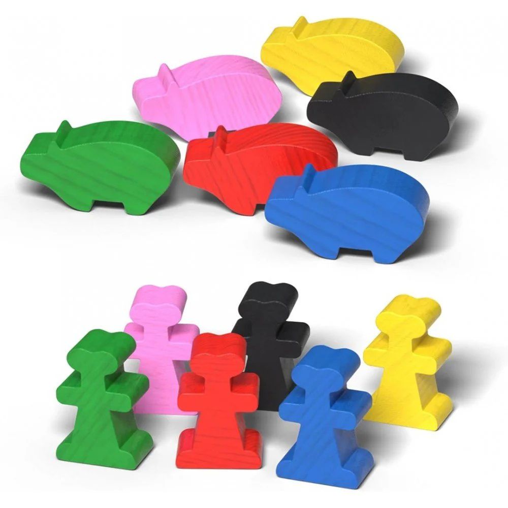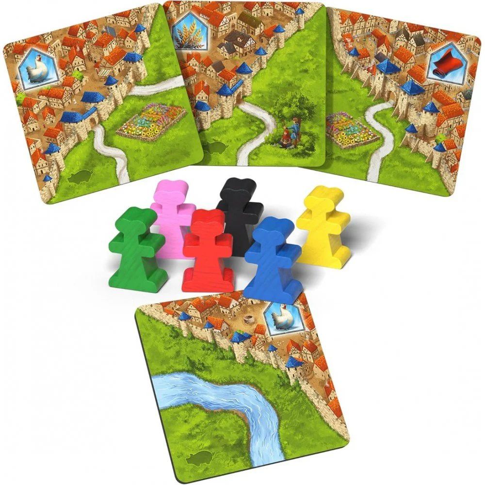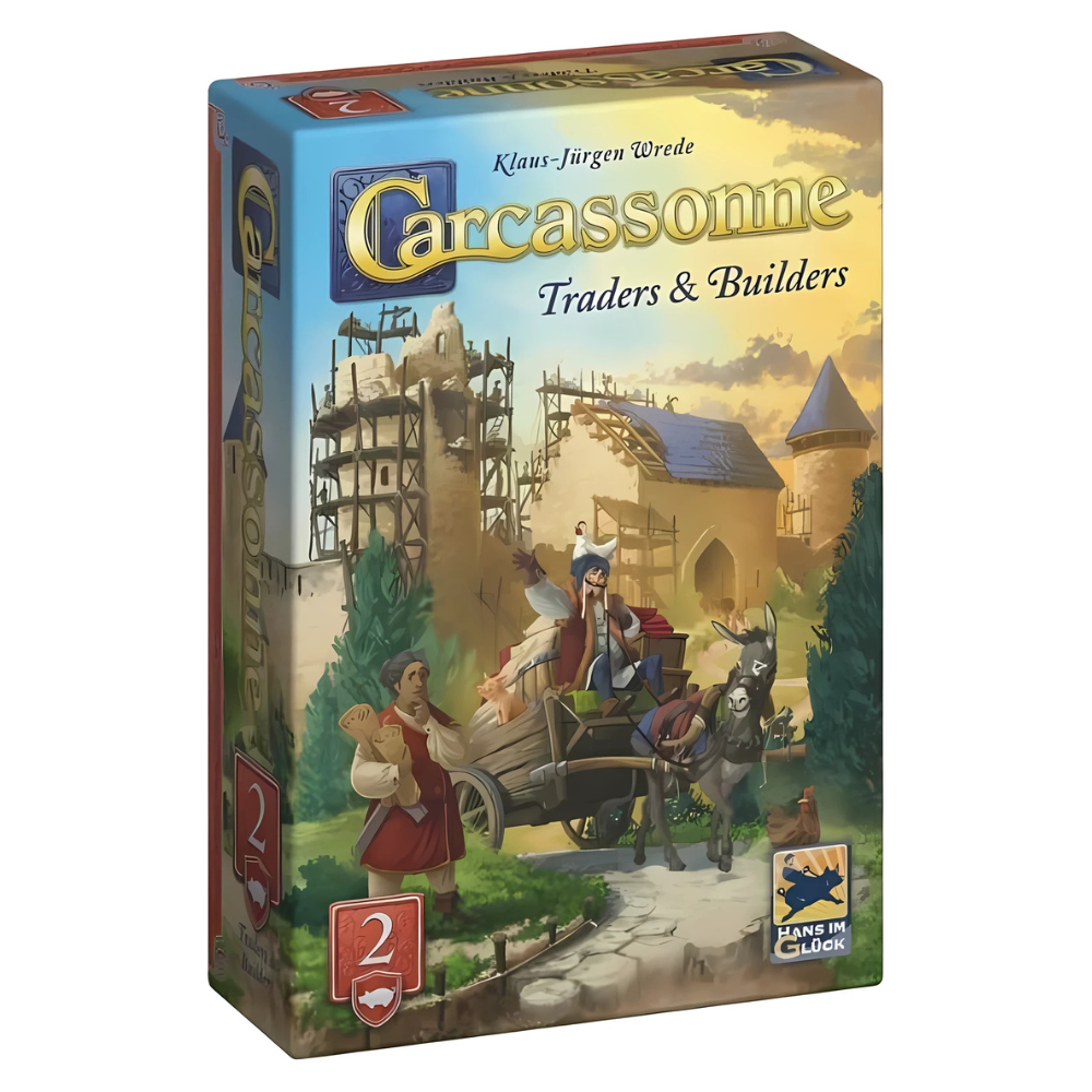 In this expansion for Carcassonne, traders and builders arrive in the cities. Collect goods and send your pig to the fields for extra points. The builder speeds up the construction of your roads and cities. Included in the expansion are 24 new land tiles, 6 builders, 6 pigs and 20 goods tokens.