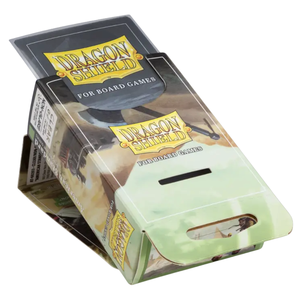 Their innovative design combines one clear side and one non-glare side, offering a wonderfully smooth shuffle and letting you choose which side faces front or back based on your preference. Dragon Shield board game sleeves in American Standard format: