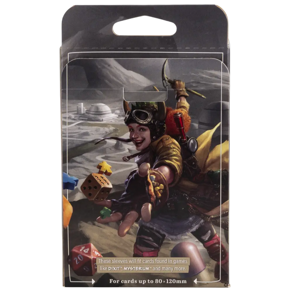 Each pack of Oversize board game sleeves comes with 100 sleeves that fit board game cards measuring up to 80x120 mm. These premium sleeves are made in a thick 100 micron quality and are made to last. Keep the box to store and neatly organise cards in your games – it fits 70+ sleeved cards.