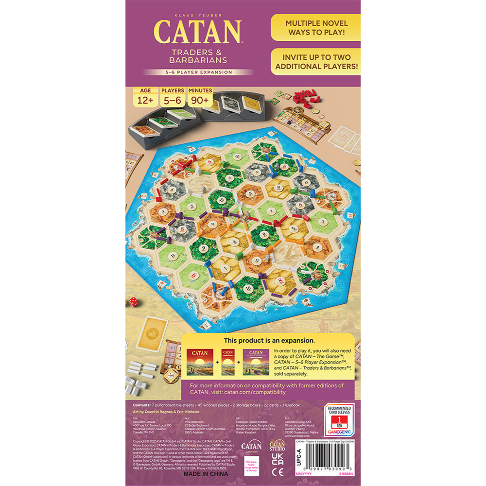 Now five to six players play together with the harbormaster, the friendly robber, or special events from CATAN: Traders & Barbarians.