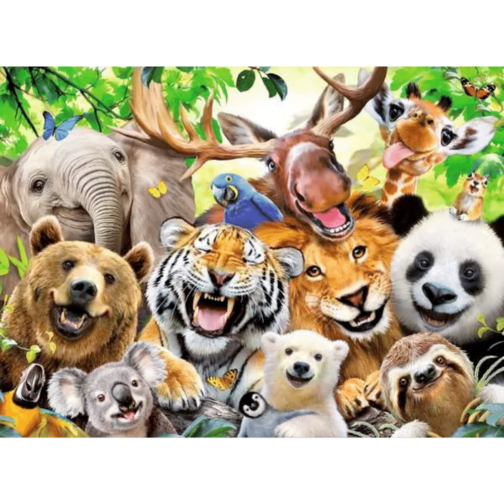 This exotic bunch are feeling excitable and fun! Amongst this super cool group is a Koala, Lion, Tiger, Bear, Elephant, Panda, Sloth, Polar Bear, Parrot, Penguin, Giraffe and a very sweet squirrel! Part of Howard Robinson's popular "Selfies" range of designs.