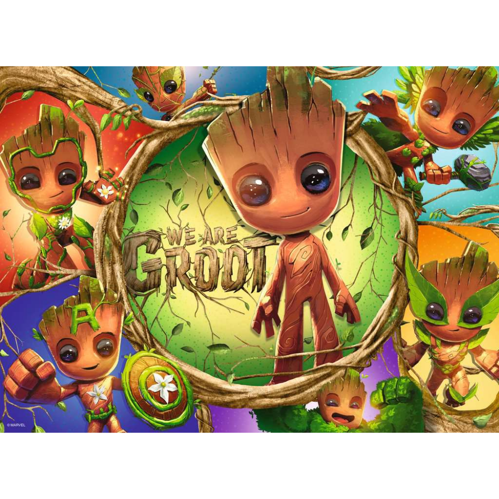 Join Groot as he masquerades as other Marvel super heroes while you piece together this bright and vibrant puzzle featuring the cute little scamp! It's important to remember we are heroes in our own way.