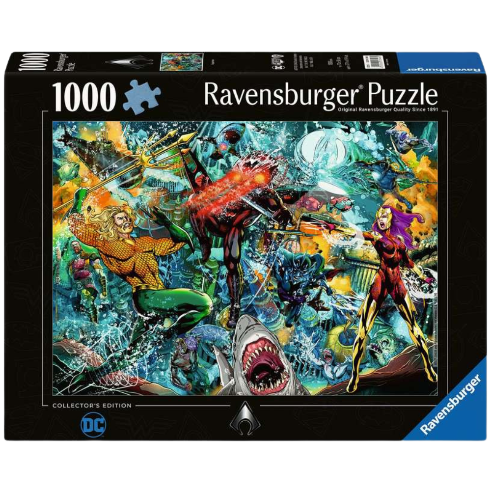 Dive into the depths of adventure with this captivating 1000-piece jigsaw puzzle featuring DC's legendary hero, Aquaman. As you assemble the pieces, you'll reveal the intricate details of Aquaman’s regal appearance and the breathtaking oceanic backdrop that surrounds him. The dynamic colours and detailed artwork capture the essence of Aquaman's strength and his connection to the sea, making this puzzle a true celebration of the King of Atlantis.