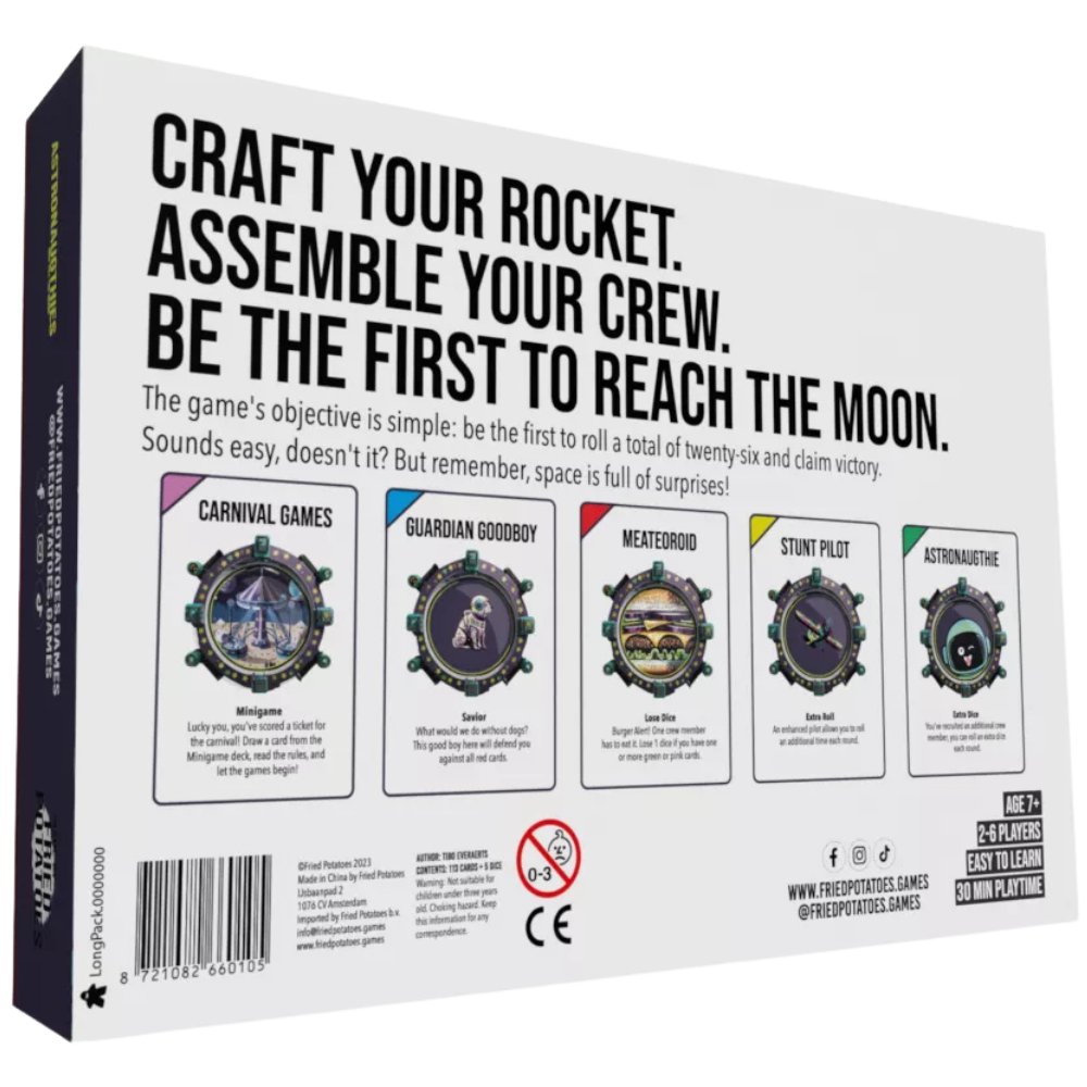 Travel through space, construct your rocket and gather your crew. Maintain your achievements and roll the dice to be the first to reach the Moon.
