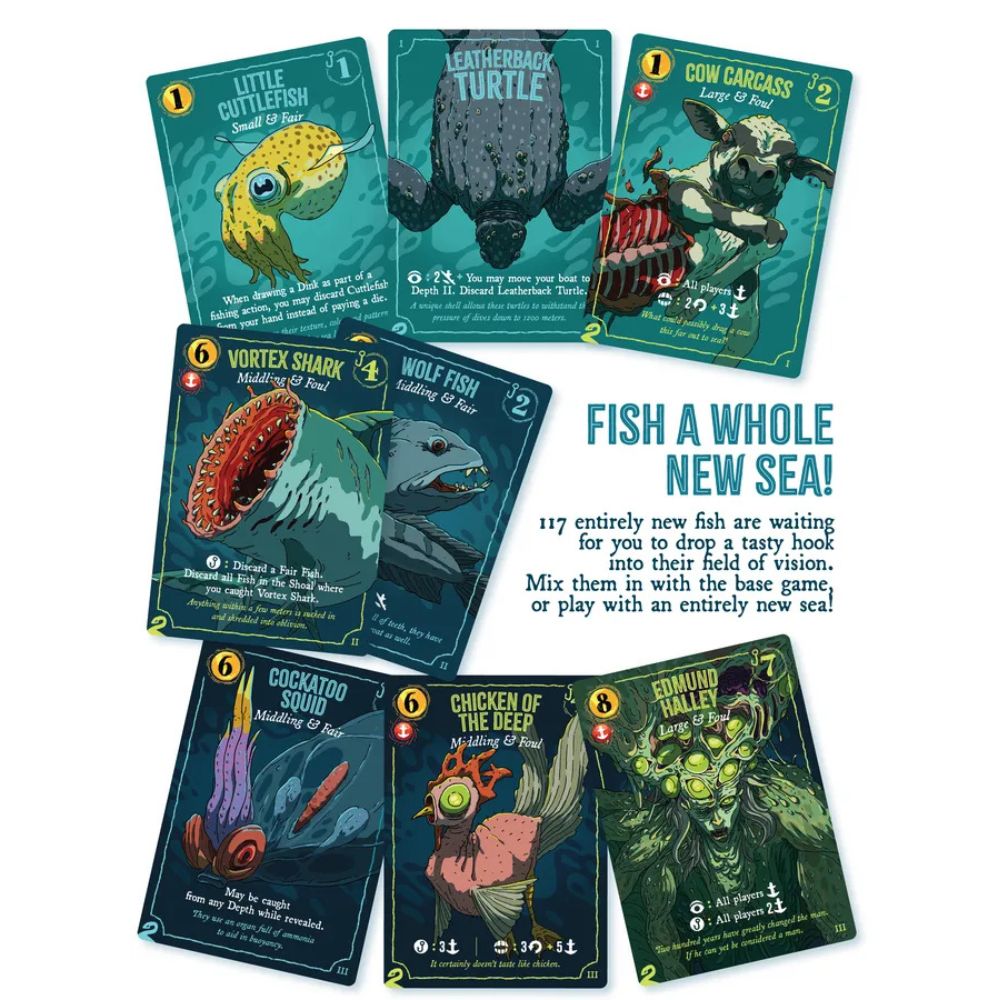 You can also fish an entirely new sea of fish, with 117 brand-spanking new fish to discover. Mix them together with the base game fish or play with just the expansion fish, it's up to you!