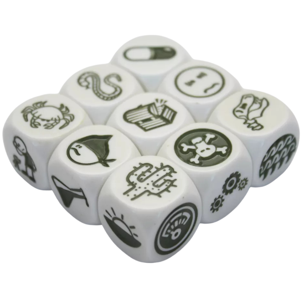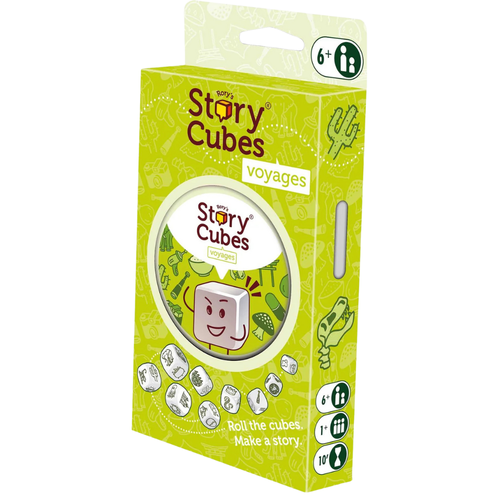 Rory's Story Cubes: Voyages – a pocket-sized set of nine cubes depicting 54 icons to inspire epic adventure – is the second expansion set for Rory's Story Cubes, while also being a standalone item. Made to the same high quality as the original set, the cubes are inked in dark green to allow for easy sorting if you choose to use more than one set during play.