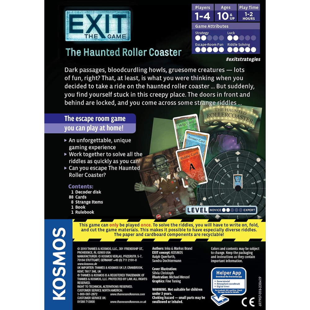 Like other titles in the series, Exit: The Game – The Haunted Roller Coaster includes components meant to be folded, written upon, or torn, so it's marketed as a single-use game.