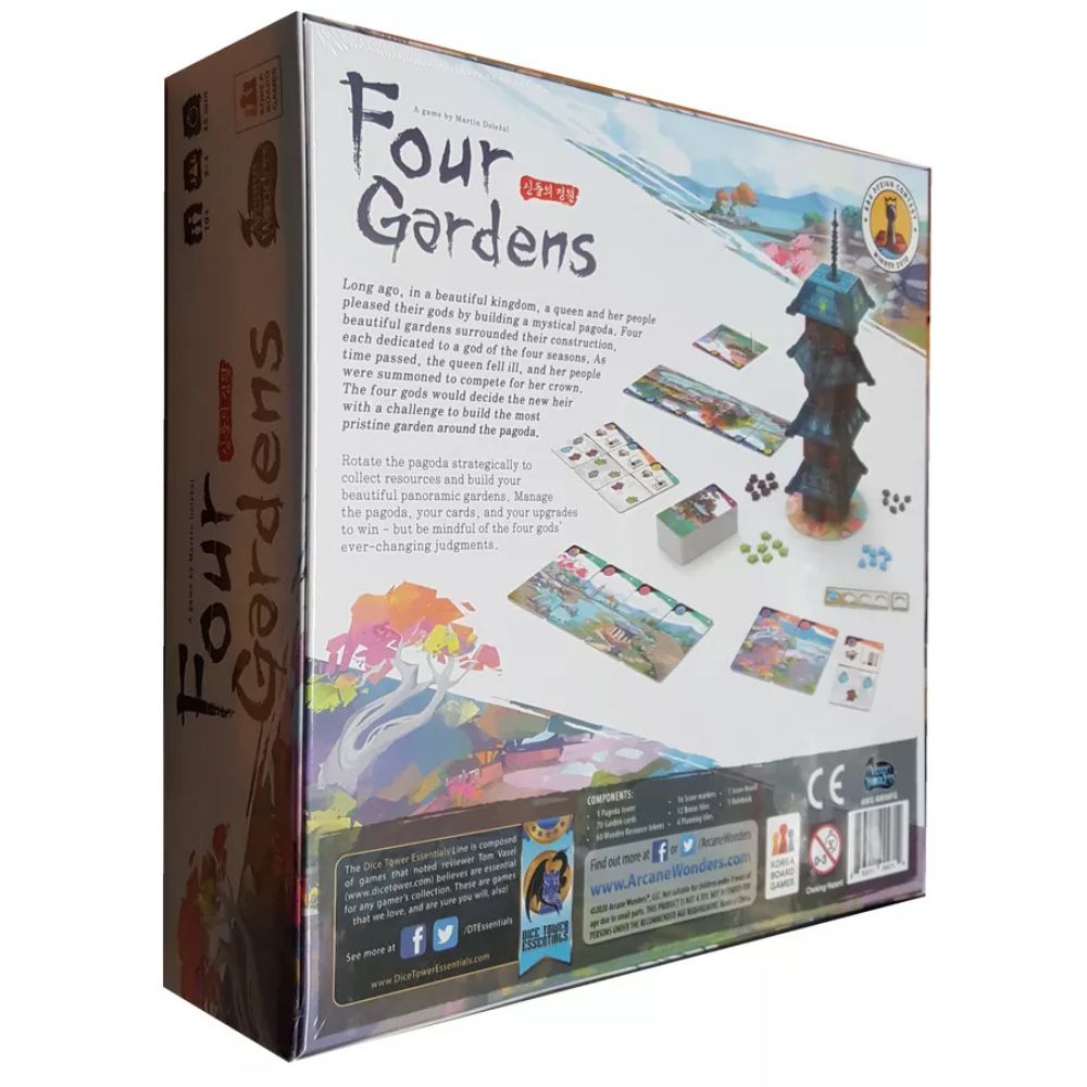 The goal of Four Gardens is to accumulate the most points on the score board by completing landscape cards and finishing sets. Each finished set creates a panoramic view of a garden, and these sets are called "panoramas".