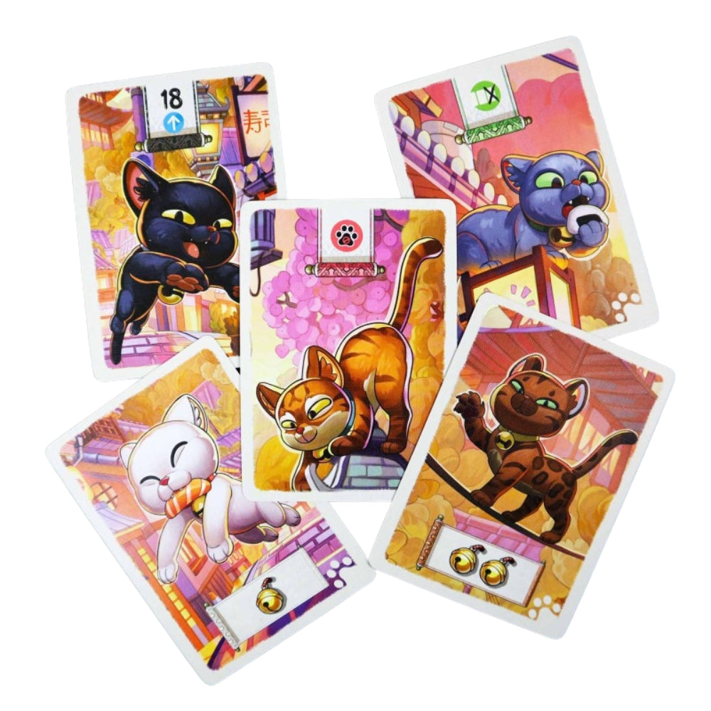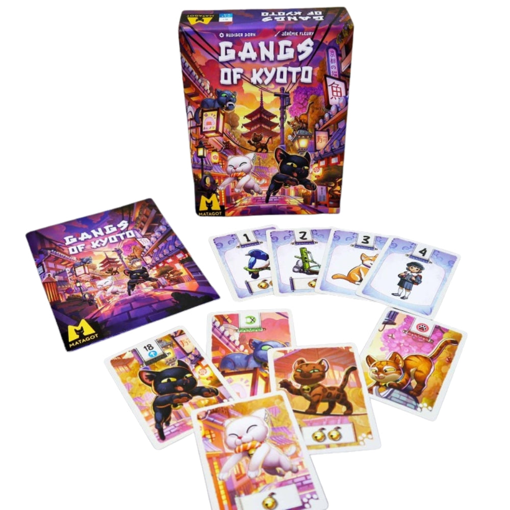 A cat's life may be wonderful, but even the happiest of cats will be curious to know what's hidden behind the walls of their garden! In this game, players take on the role of cats exploring the city. As the deck is explored, the cats will find food, friends and special gifts... But be careful not to stay too late: you might get lost in the streets of Kyoto!