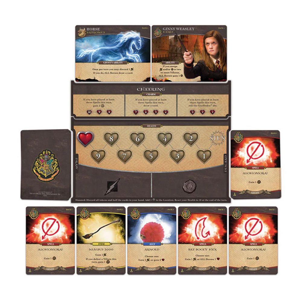This second expansion to Hogwarts Battle increases the player count to five heroes thanks the newest playable character — Ginny Weasley! Enhance your experience with charm abilities to aid you as you battle new villains, such as such as Pansy Parkinson and Marcus Flint, and encounter even more challenges. Trouble is brewing, so only by working together will you be able to protect the Wizarding World from He-Who-Must-Not-Be-Named thanks to the new spells, items, and allies you'll find in the four new packs of content.
