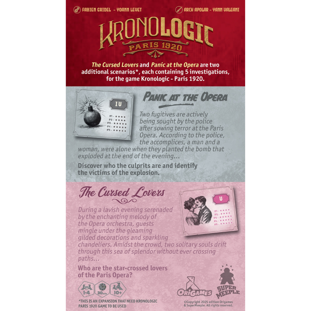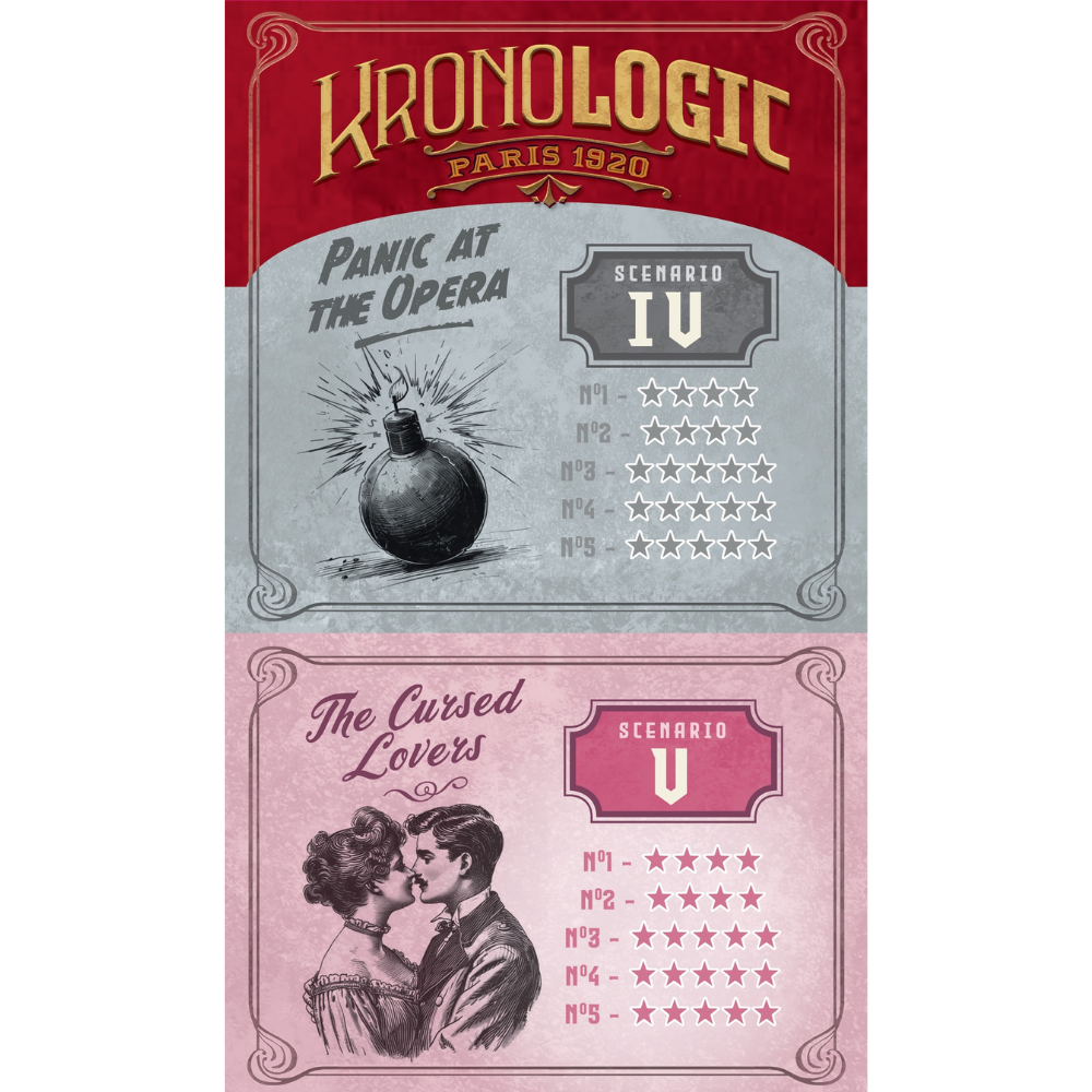 Kronologic: Paris 1920 – Panic at the Opera & The Cursed Lovers contains two new scenarios for Kronologic: Paris 1920, both with a difficulty ranging between 4/5 and 5/5.