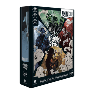 Unmatched returns with Cobble and Fog, featuring four brand new heroes Sherlock Holmes, Jekyll and Hyde the invisible Man and Dracula! Each character has a unique deck of cards that fit their fighting style and designed to their legendary abilities. Tactical movement and combat create a great gaming experience as the Unmatched series continues!