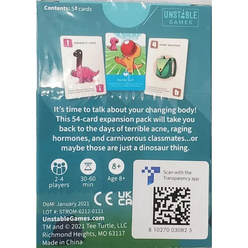 It's time to talk about your changing body! This 54-card expansion pack will take you back to the days of terrible acne, raging hormones, and carnivorous classmates... or maybe those are just a dinosaur thing.