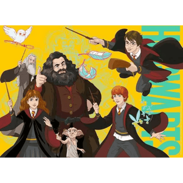 Immerse yourself in the magical Wizarding World with favourite characters Harry Potter, Hermione Granger, Ron Weasly, Hagrid, Dimbledore and Dobby the House elf. This 100 piece extra large puzzle is a must have for any Harry Potter fan!
