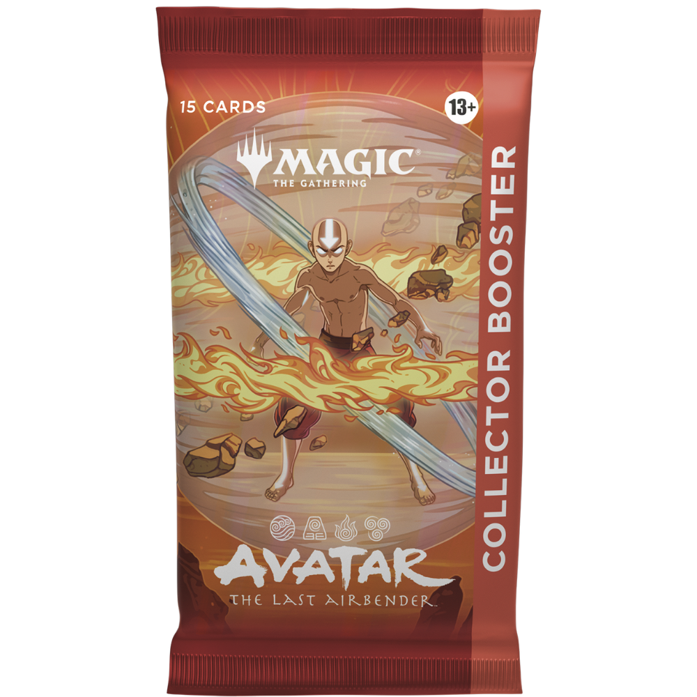 Discover wonders rivaling Wan Shi Tong's library with Magic: The Gathering | Avatar: The Last Airbender Collector Boosters! Each booster contains the quenchiest cards from all across the four nations, including rares and/or mythic rares, traditional foils, and a full-art basic land. You may also encounter source material cards and neon ink borderless battle pose cards that celebrate the show's iconic visuals. Plus, you can even hunt down and capture the Avatar himself: a raised foil Avatar Aang illustrated by show creator Bryan Konietzko!
