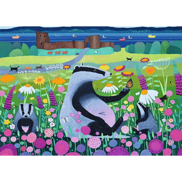 This beautifully illustrated countryside scene is brimming with detail: playful badgers nestled among wildflowers, bees and butterflies in flight, curious cats on the path, and deer grazing near an ancient castle overlooking the sea. The vibrant colours and charming design make this puzzle ideal for nature lovers, animal fans, art enthusiasts, and keen puzzlers.