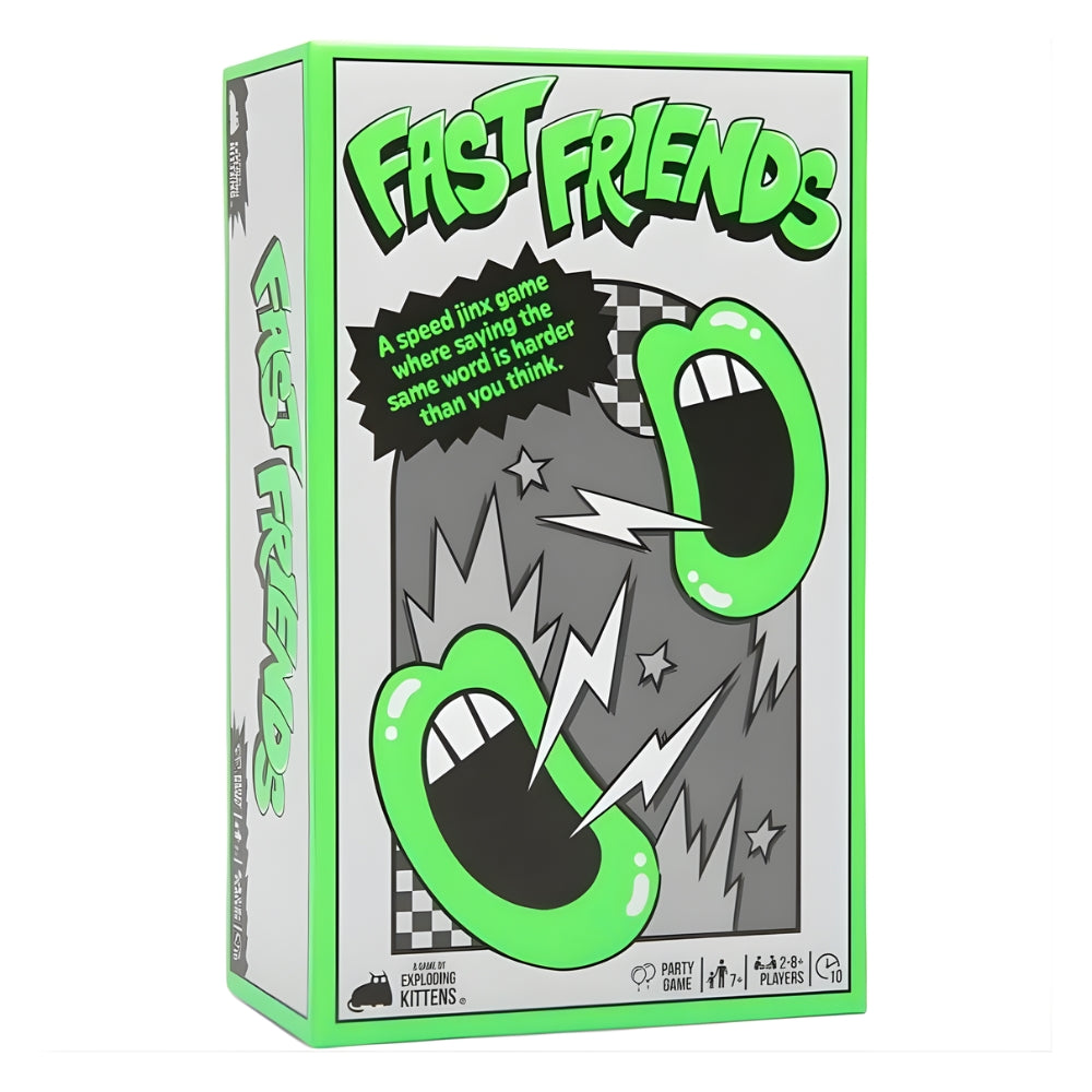 Set the timer and read the word on your card. On the count of three, you and the person to your left have to say the same associated word in unison. If you fail, go again until you match. But hurry, you don’t want to be caught when the timer goes off.