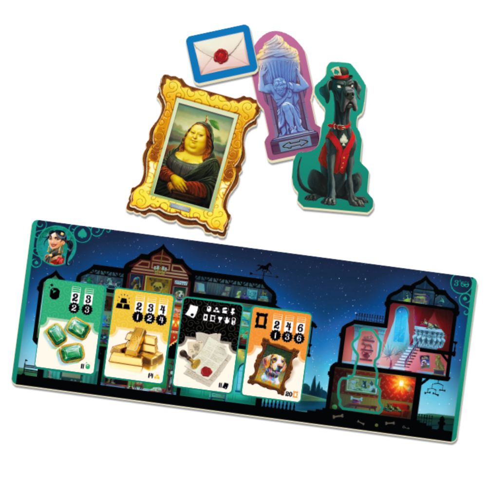 Each turn, one player (burglar) becomes “The Mastermind”, planning their perfect, infallible Heist. In the meantime, the other burglars in town have been busy trying to guess where the break-in will be. If The Mastermind manages to go alone, they will take all valuables in that location for themselves, but if the other burglars guess correctly, and show up in the right place, they will be able to pinch some Valuables from The Mastermind’s Heist! The player who steals and sells the most Valuables, and hence “Redistributes” the most wealth is the winner.