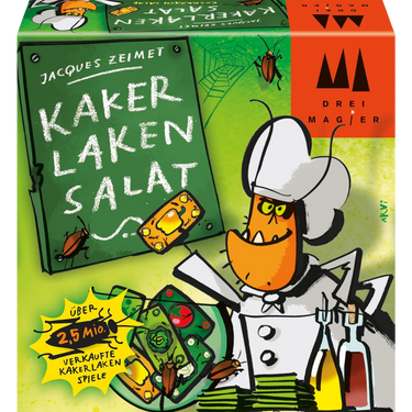 The 128 cards – 120 vegetable cards in the four types and eight "taboo" vegetable cards, two of each type that bear cockroaches – are shuffled and divided among the players. On a turn, a player plays the top card from his deck onto the central pile of cards, naming the vegetable as he plays it, e.g., "Pepper!" – except in the following situations: