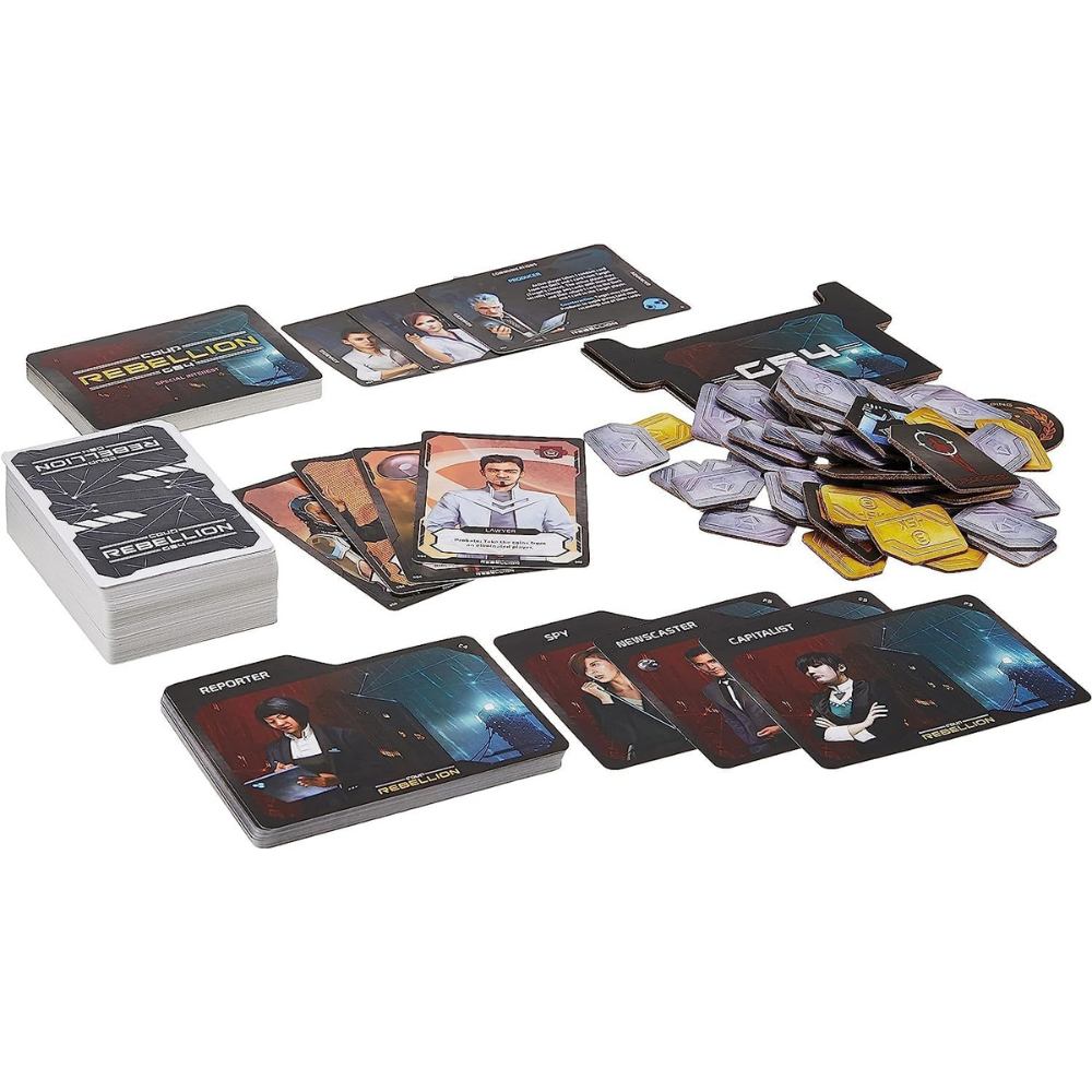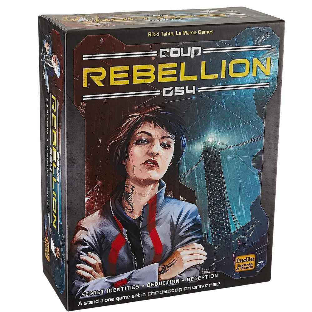 Coup: Rebellion G54 is a new standalone game that takes the same simple Coup mechanisms and rules, but with a variable deck of 25 characters, and in each game you choose to play with five out of the 25, so the relative power and advantage of each character changes from game to game. This is more of a gamer’s game than the original Coup as you can create a deck to increase bluffing, deduction, negotiation or luck.