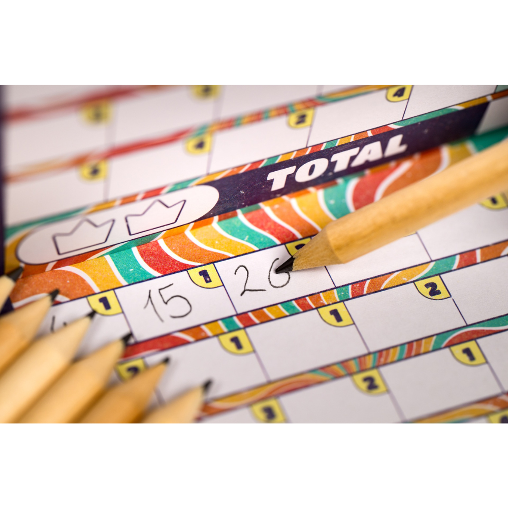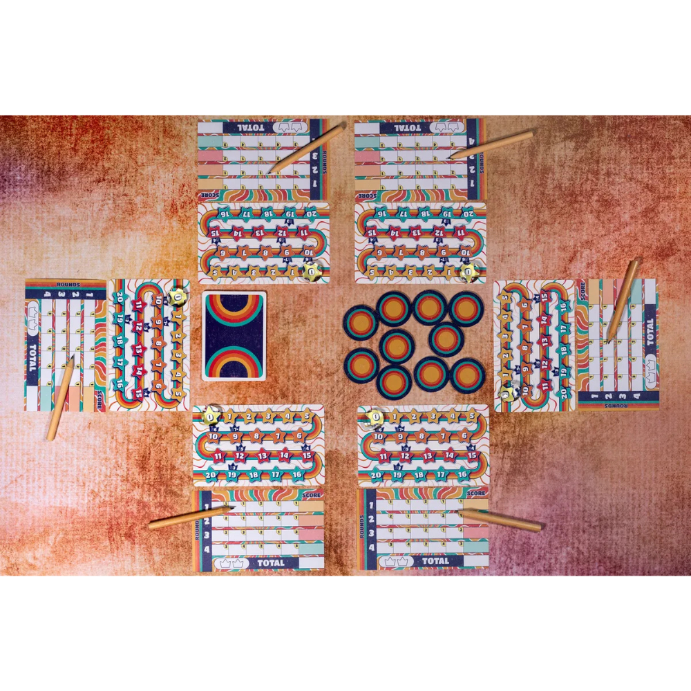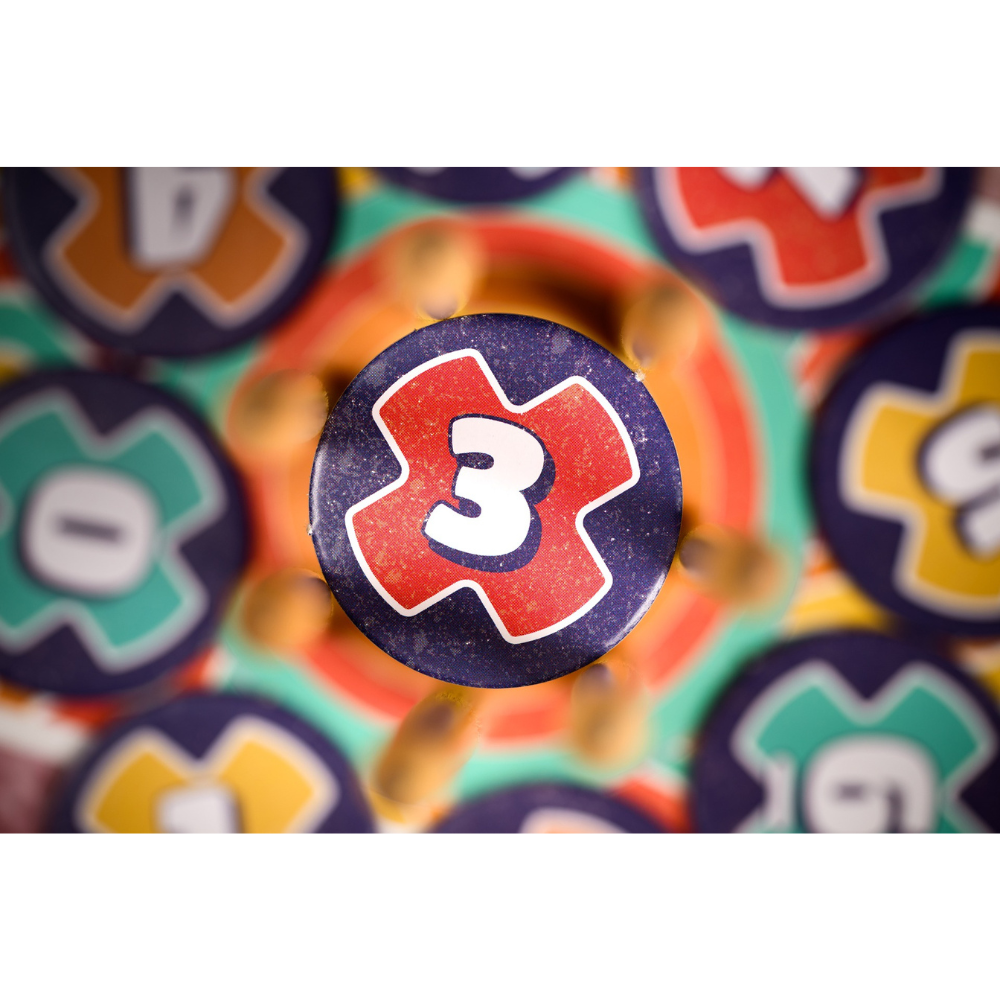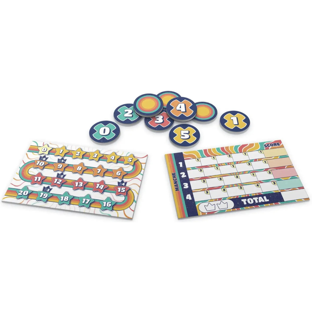 In Fifty, you choose your numbers between 1 and 50 and write them on your sheet. Try to avoid picking the same ones as other players. Now, start to count! 1,2, 3… Did one of your numbers get called out? It’s your turn to count and the longer you count, the more points you win! But watch out: if you call out a number that another player chose, they take over the count! How long will you be able to keep counting for?