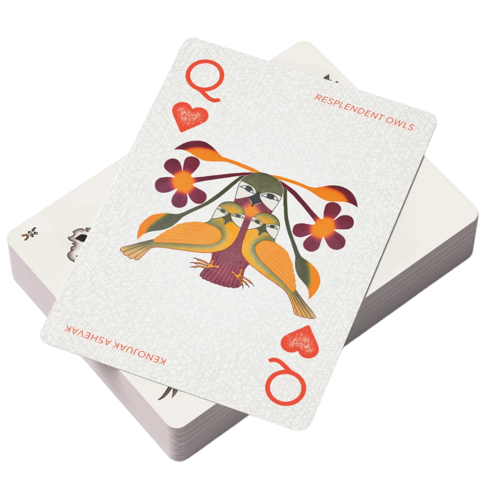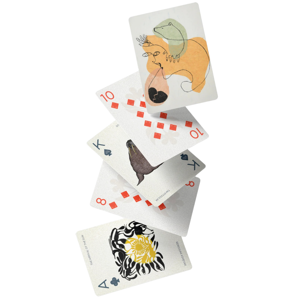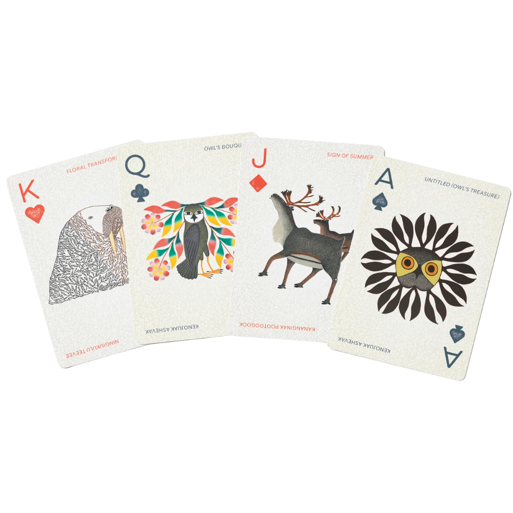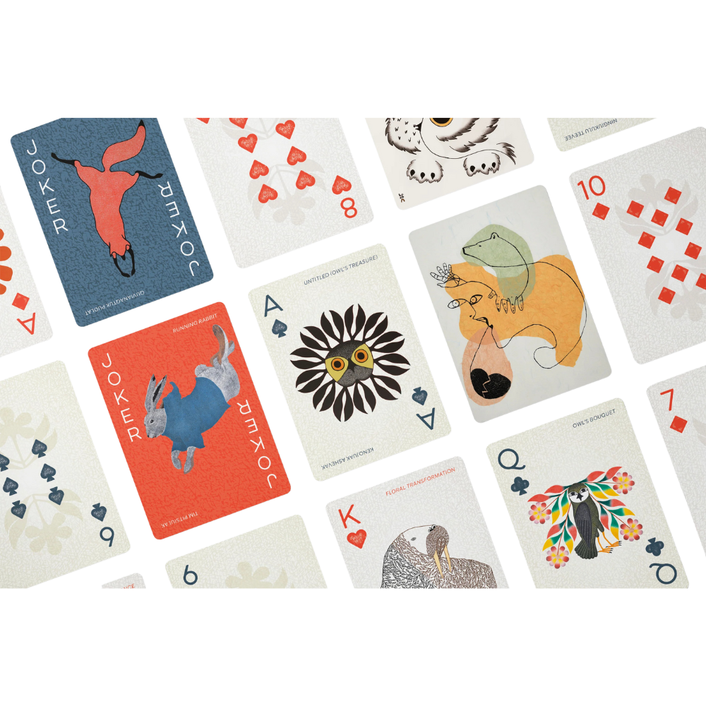 About 1,200 miles north of Toronto, the hamlet of Kinngait (Cape Dorset), Nunavut, is home to a multigenerational community of graphic artists. Their cooperatively owned printmaking studios have been in continual operation since 1959, producing unique, captivating, and powerful images. The cards in this deck feature art by preeminent printmakers, including Kenojuak Ashevak, Ningiukulu Teevee, Kananginak Pootoogook, Saimaiyu Akesuk, Qavavau Manumie, and more