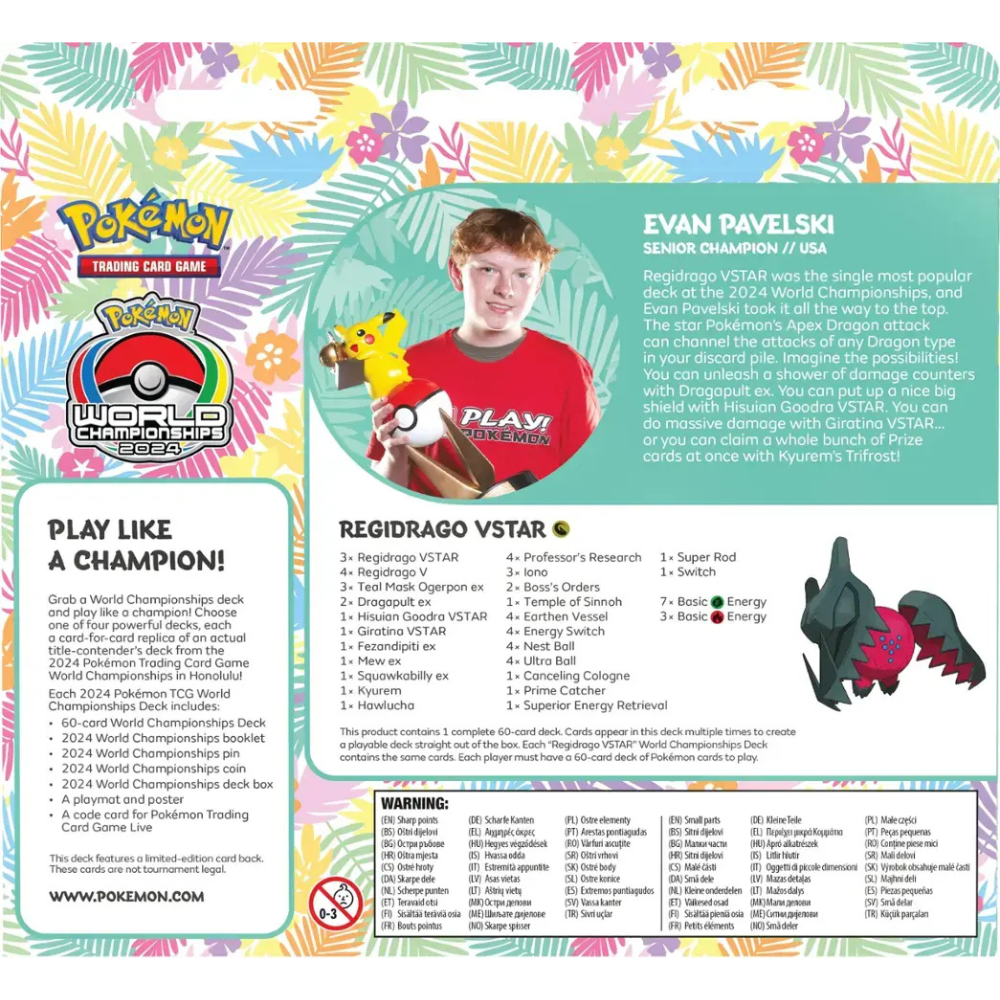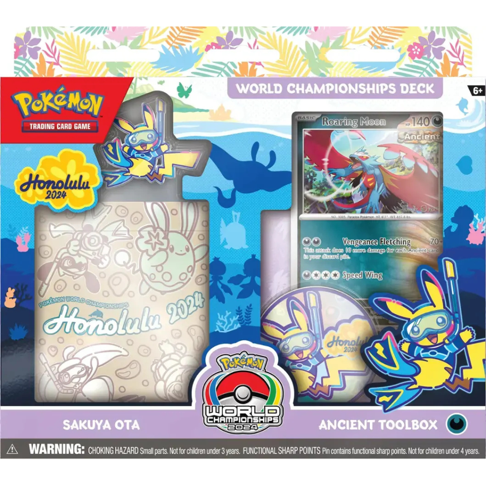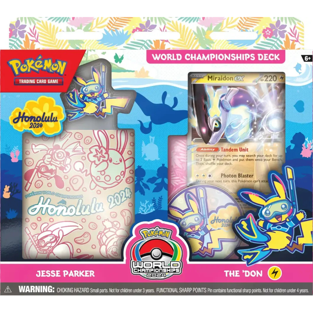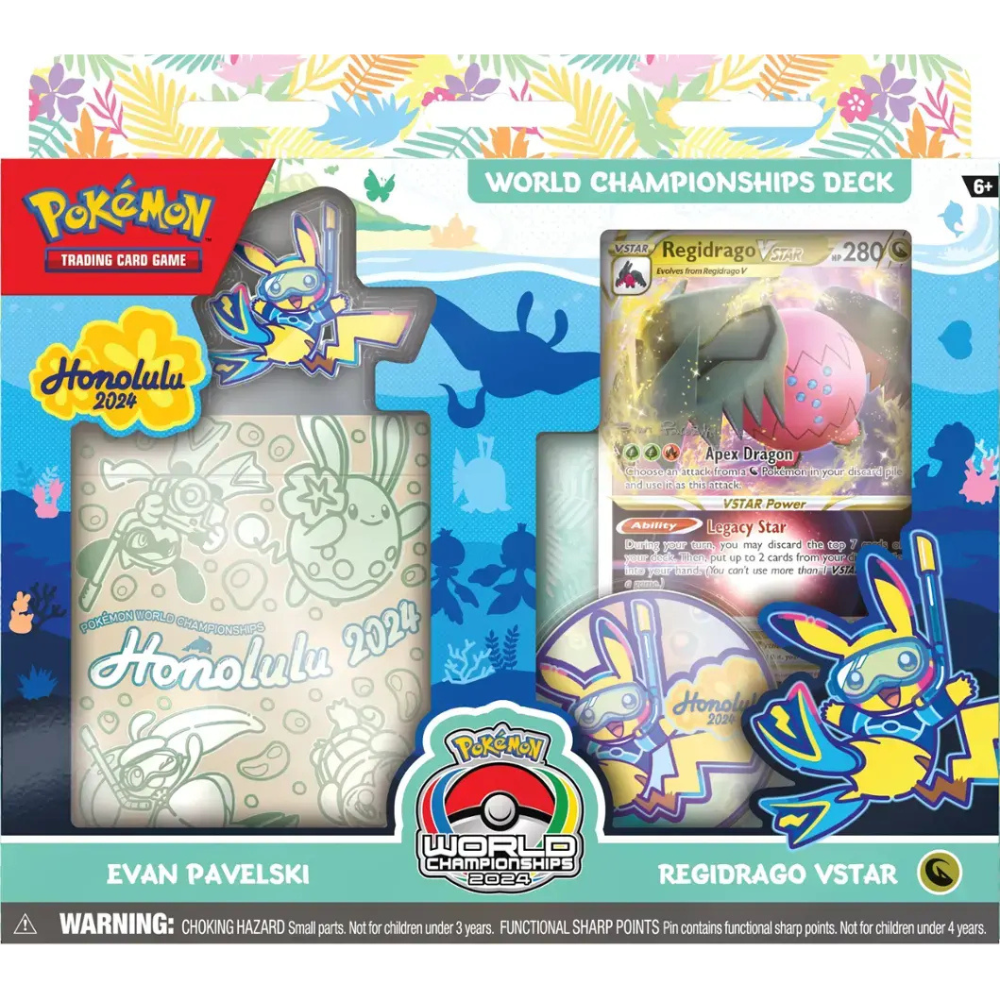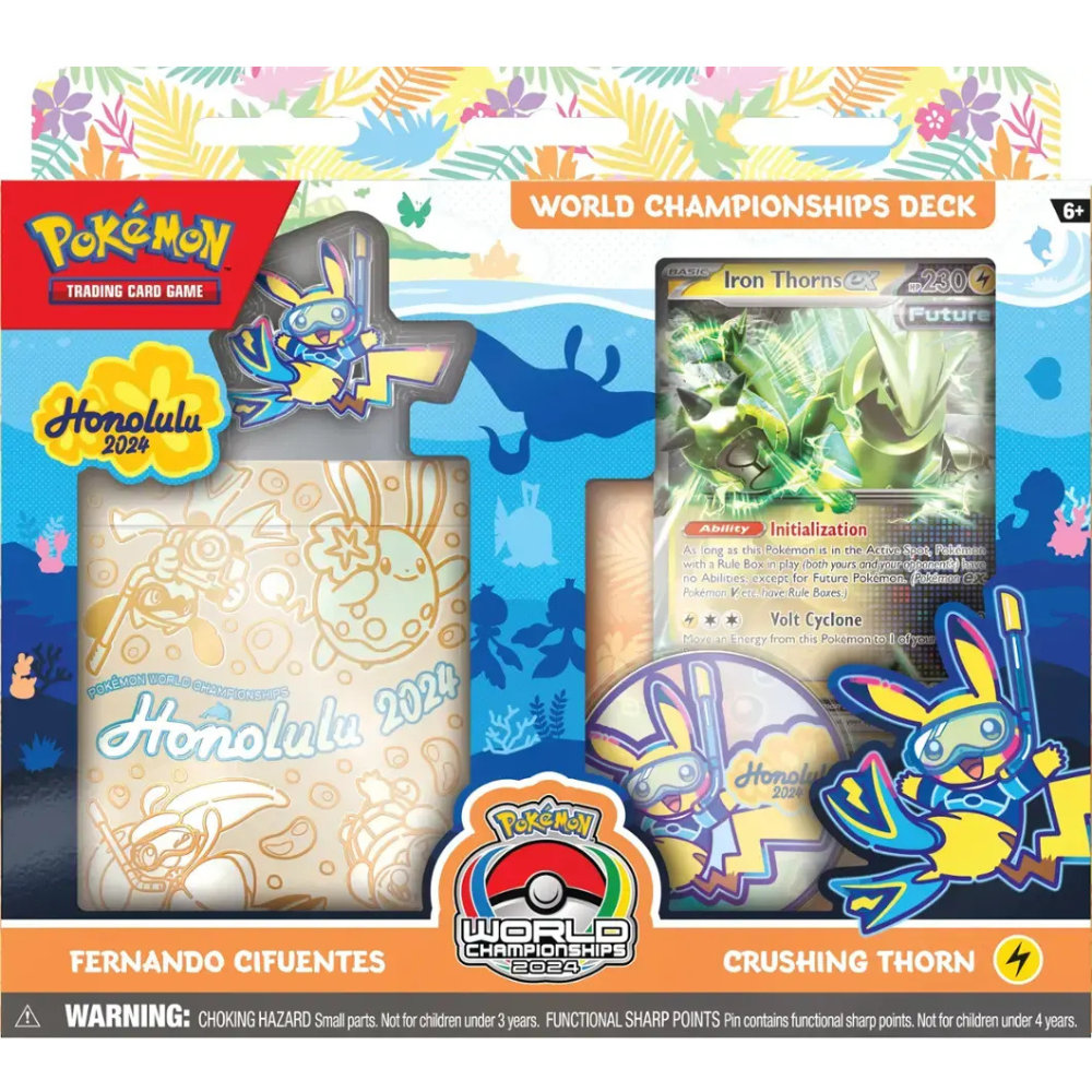 Grab a World Championships deck and play like a champion! Choose one of four powerful decks, each a card-for-card replica of an actual title-contender’s deck from the 2024 Pokémon Trading Card Game World Championships in Honolulu!