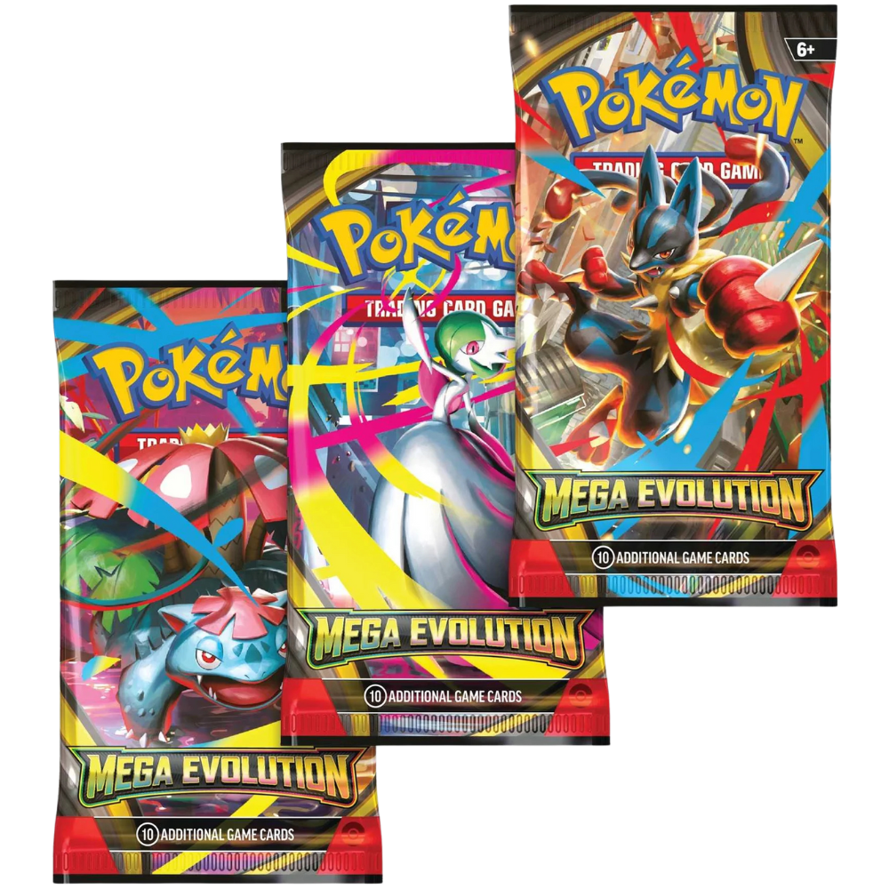 Harness the strong aura of Mega Lucario ex, embrace the overflowing power of Mega Gardevoir ex, and team up with more of these powerful Pokémon that boast devastating attacks and massive HP. But consider your strategy carefully—extra power brings extra risks! Choose your Pokémon partners and prepare for the biggest battles you’ve ever seen in the Pokémon TCG: Mega Evolution expansion!