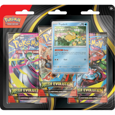 This set includes a special foil promo card featuring one of Psyduck or Golduck! You will also find 3 Pokémon TCG: Mega Evolution booster packs.