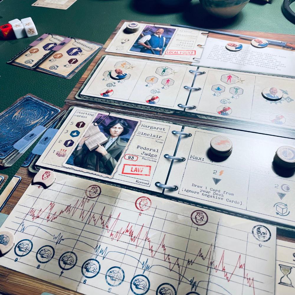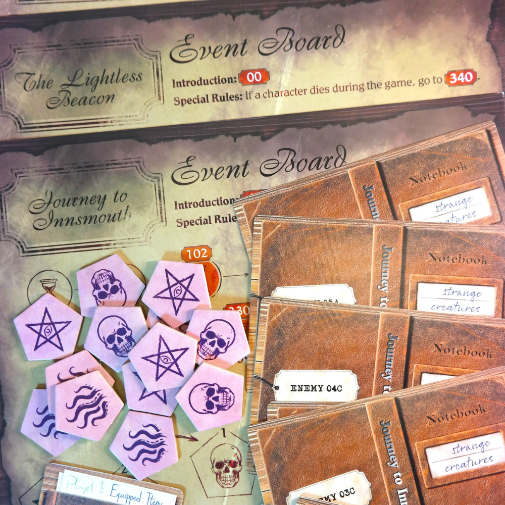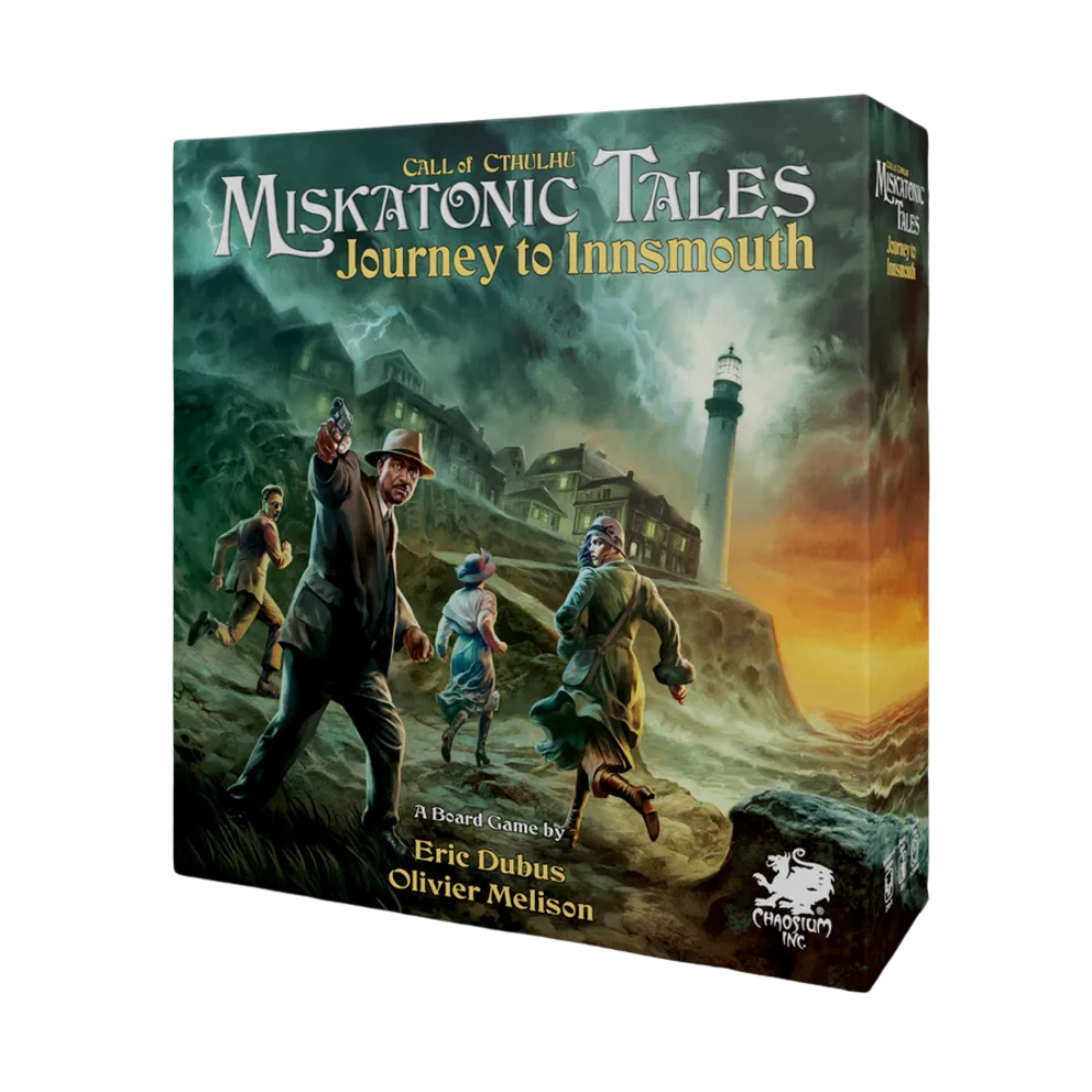 Miskatonic Tales: Journey to Innsmouth is an immersive, storytelling board game that transports you into the realm of the Cthulhu Mythos and confronts you with forbidden knowledge waiting impatiently to be uncovered. Unsure of who your actual enemy is, you must investigate a chain of events in a mysterious place fate has brought you to. Fortunately, other Investigators are with you and together you can solve this case.