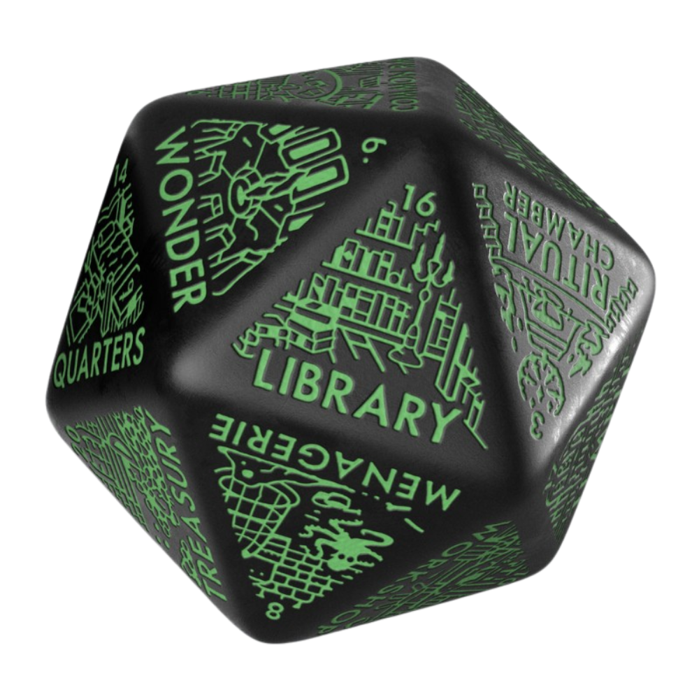 No dungeon ready in your mind? Roll and explore! The Dungeon Generator Die is a jumbo-sized D20 designed by Viridian Dice — a perfect tool for Game Masters who love spontaneous world building. Each roll determines a unique chamber, adding structure and surprise to your underground adventures.