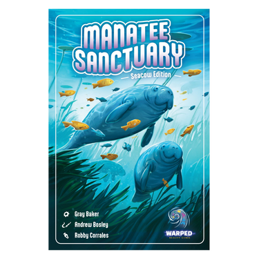 Manatee Sanctuary is a family weight game in which players will draft cards using an "I split you choose" method over the course of 3 rounds. Once the draft is complete players will decide whether to use their cards for their top action, thereby attracting manatees and producing food, or grow their sanctuary by tucking the top portion of the card under their ever expanding board creating more room for manatees and increasing their food production. There are many different types of manatees in the sea each with their own effects and after each player has finished using their cards everyone must feed all their hungry manatees! Once all manatees have been fed players will score points based on the number of manatees they have, their type, and the round they are in. At the end of 3 rounds whoever has the most points wins!