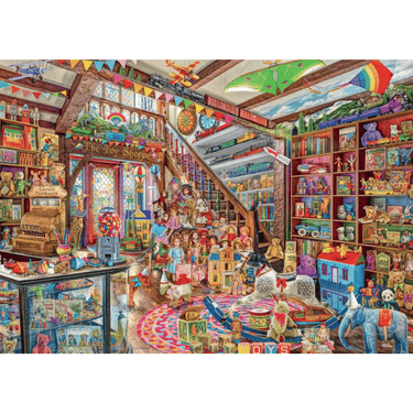 This remarkable toy shop is full of wonderful vintage toys. Porcelain dolls, teddies, tinplate trains, cars and robots, kites, spinning tops, boxed games, building blocks and more besides fill every cabinet, shelf and surface. And a little sign promises even more treasure upstairs. Just imagine wandering around this amazing place!
